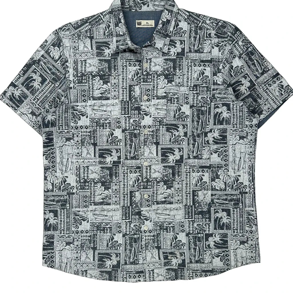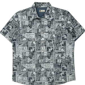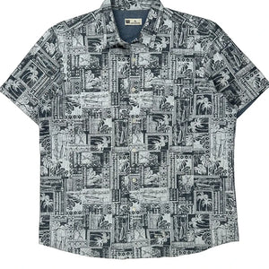 Rivers Graphic Hawaiian Shirt - XL Black & White Cotton