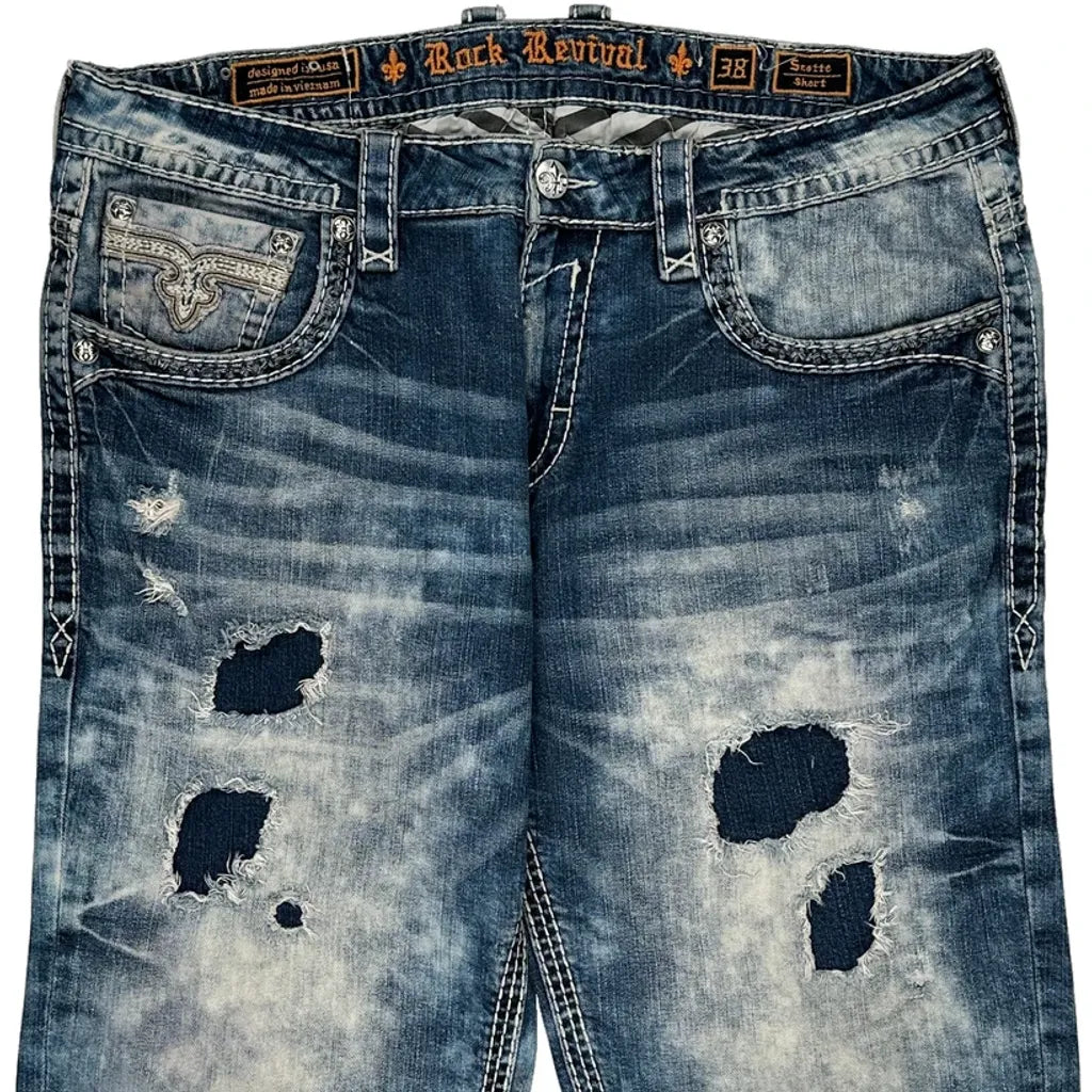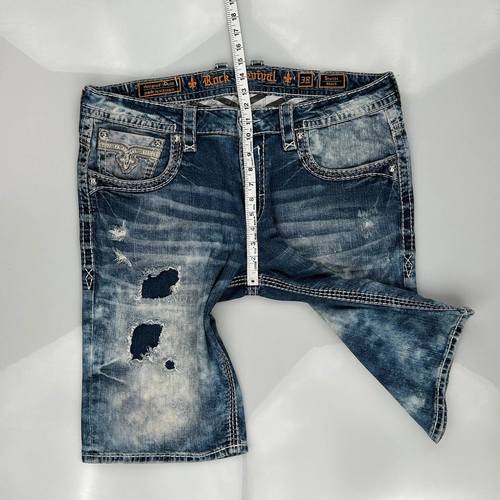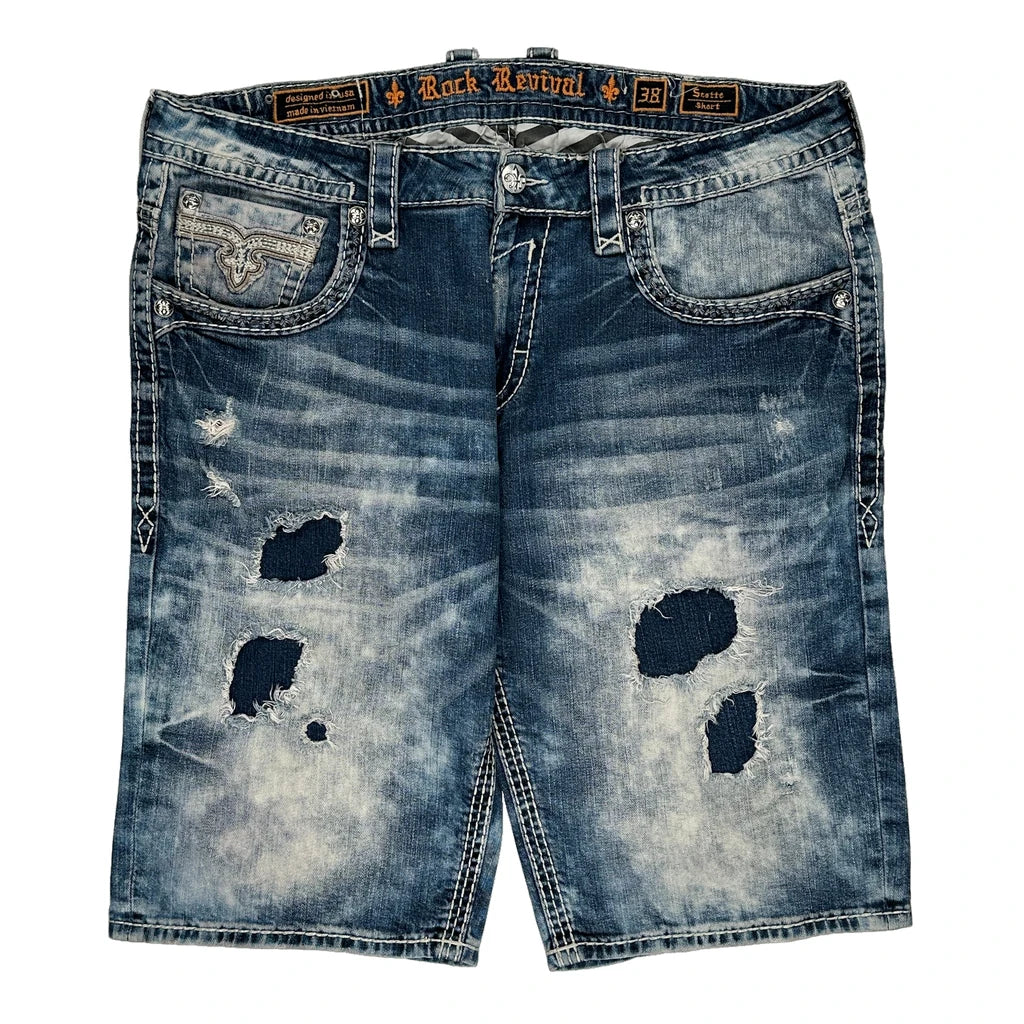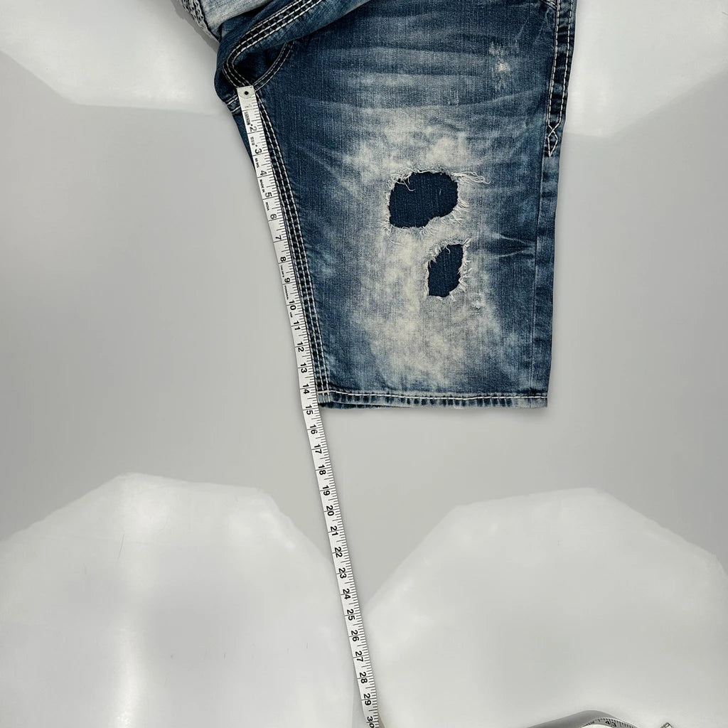 Rock Revival Denim Shorts - 42W 14L Acid Wash Cotton Blend