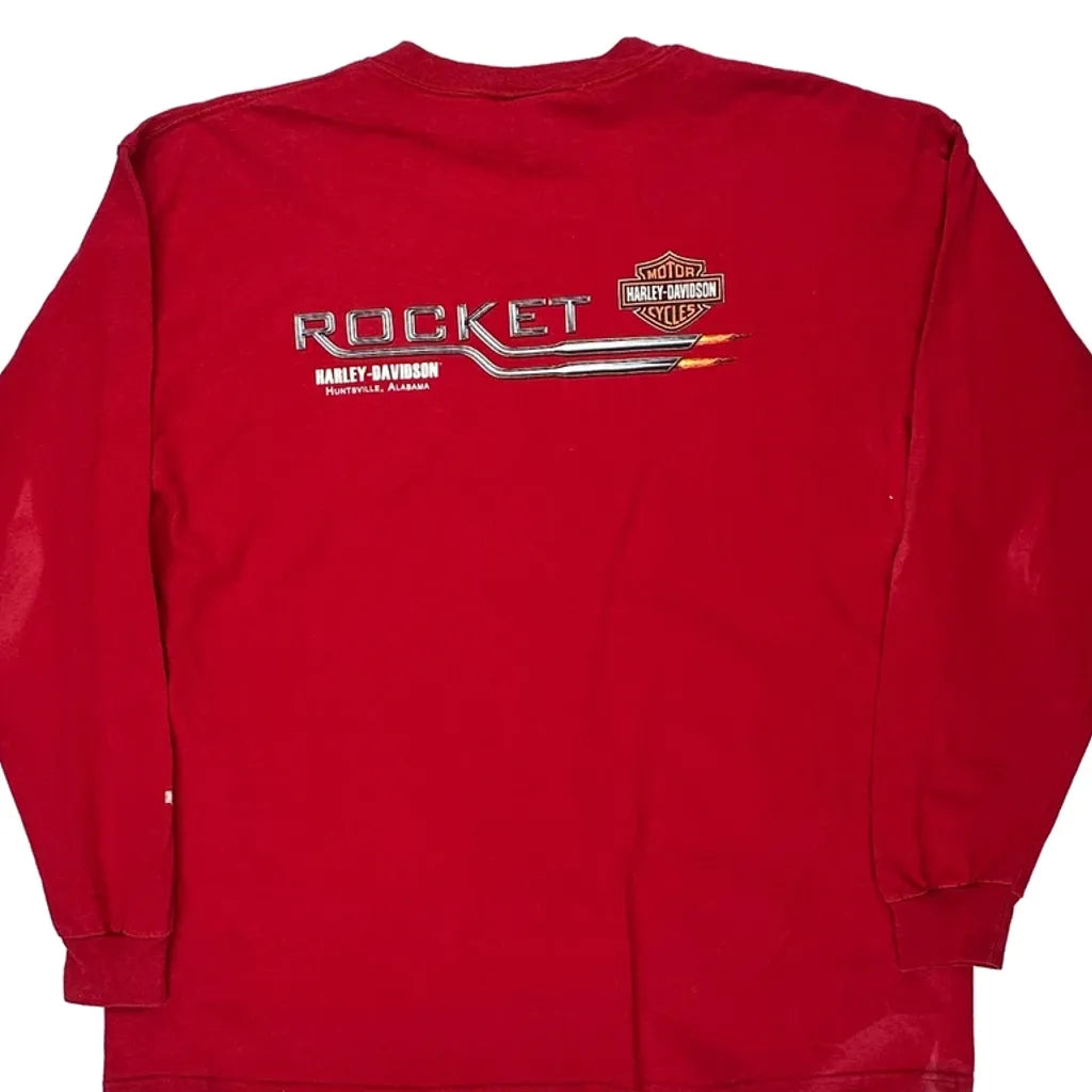 Rocket Harley Davidson Graphic Long Sleeve T-Shirt - XL Red Cotton