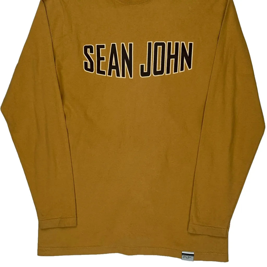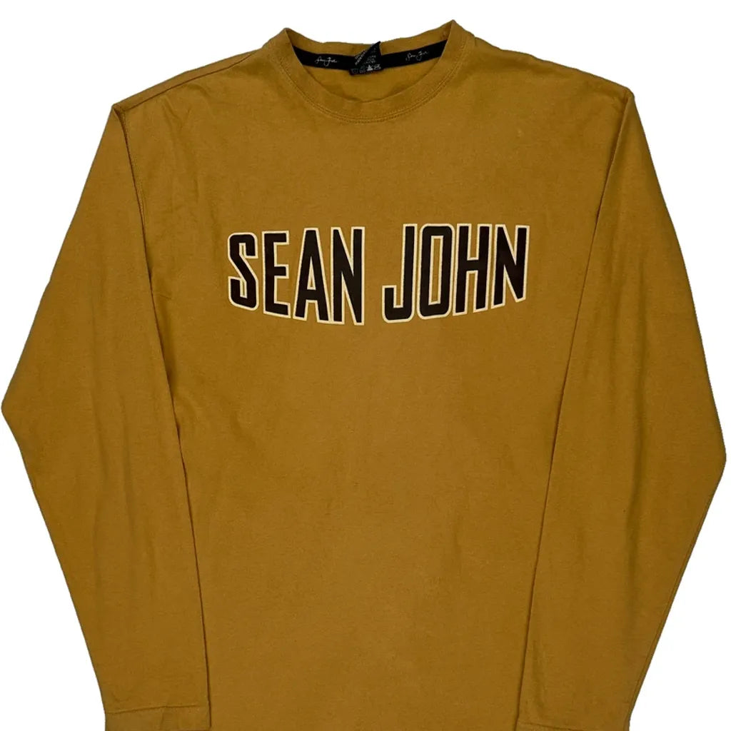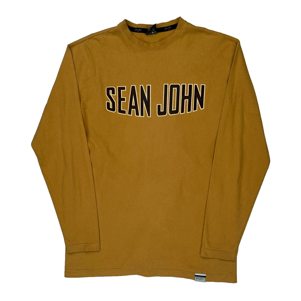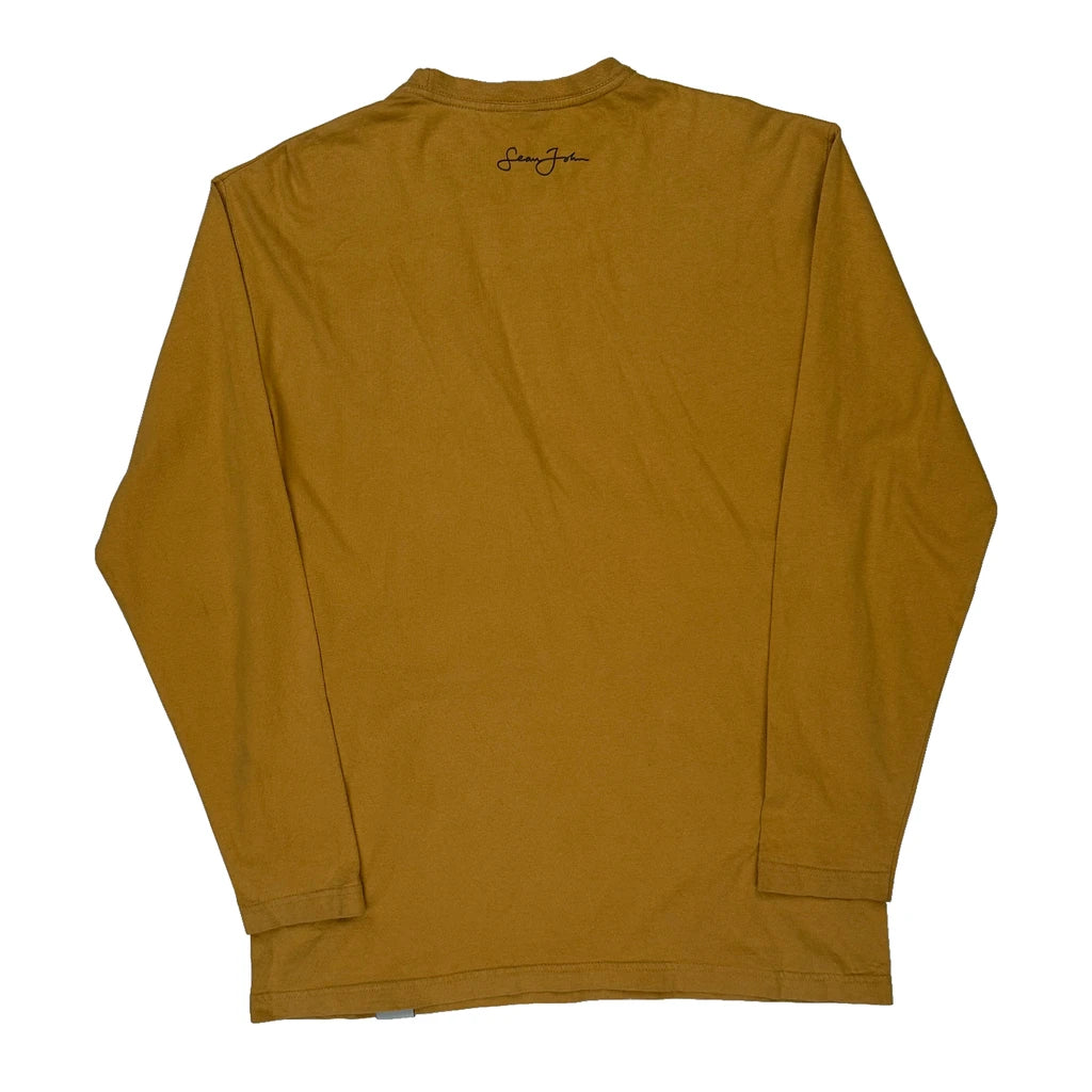 Sean John Spellout Long Sleeve T-Shirt - Medium Brown Cotton