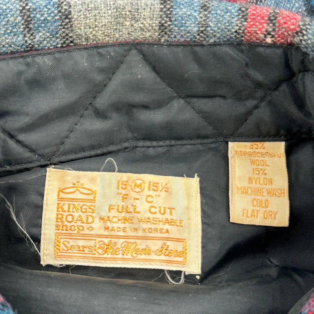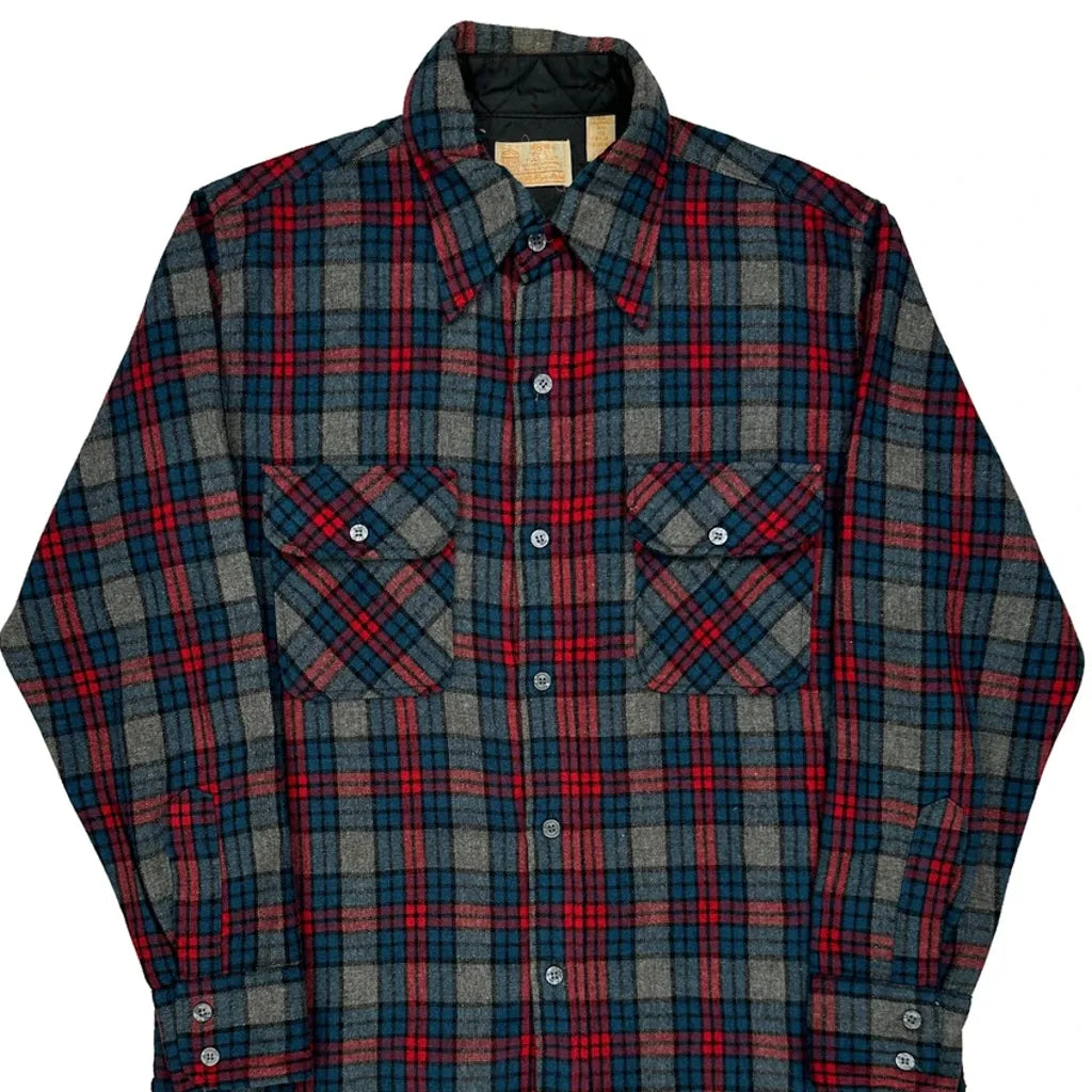 Sears Checked Flannel Shirt - Medium Blue Wool Blend