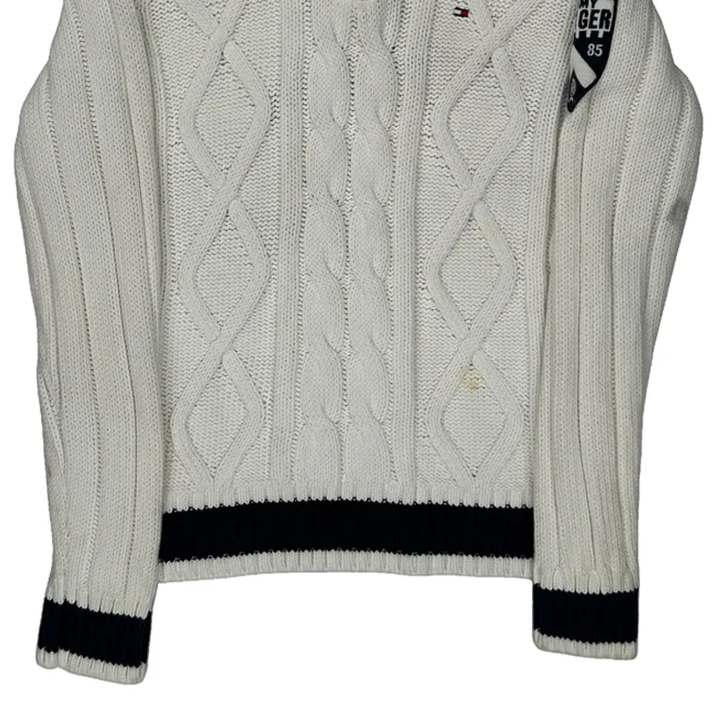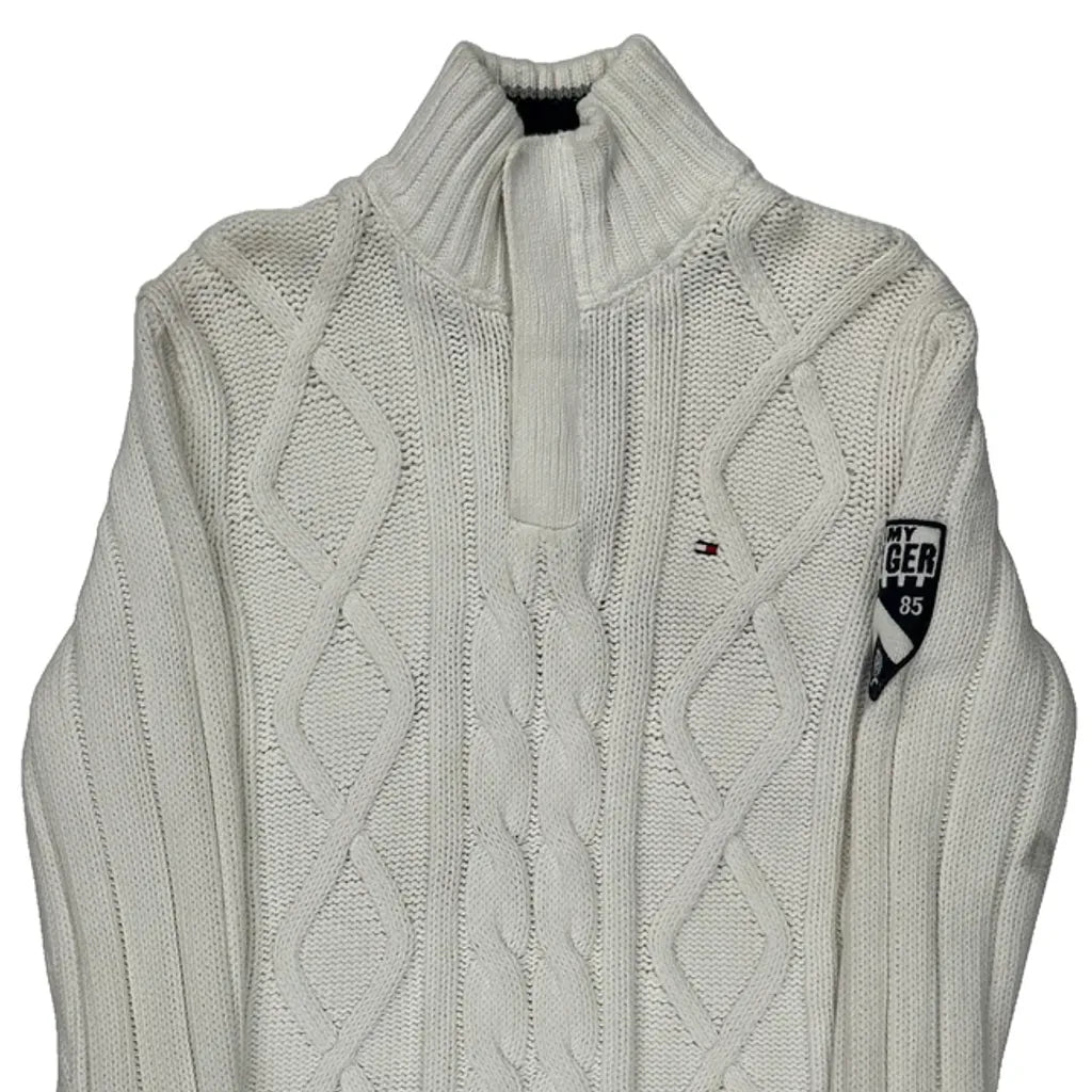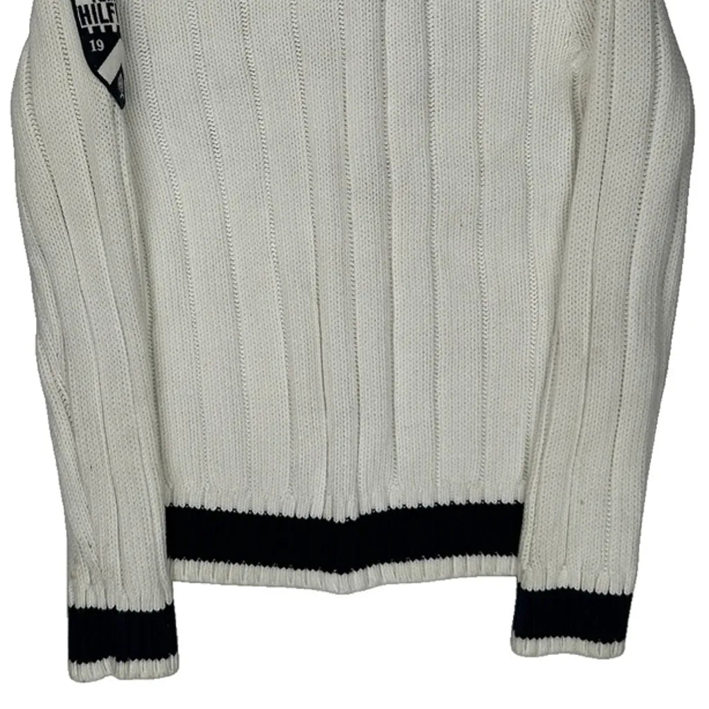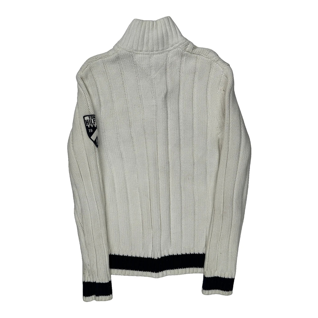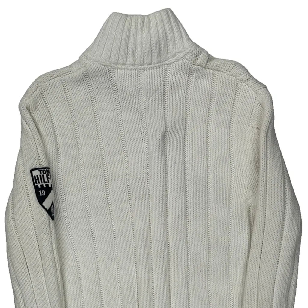 Shield Patch On Sleeve Tommy Hilfiger 1/4 Zip - Medium White Cotton