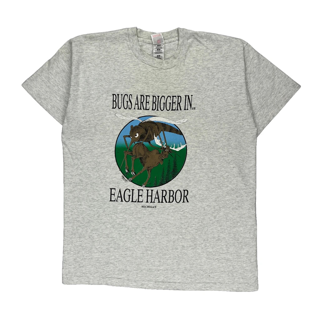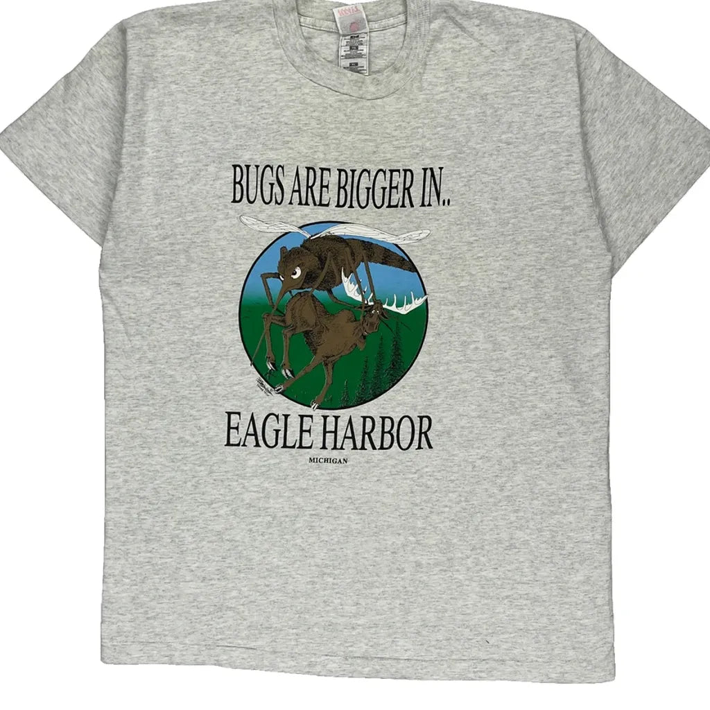 Single Stitch Eagle Harbor Fruit Of The Loom Graphic T-Shirt - XL Grey Cotton