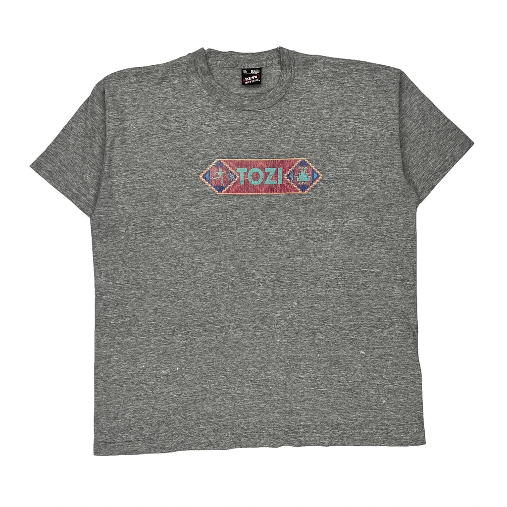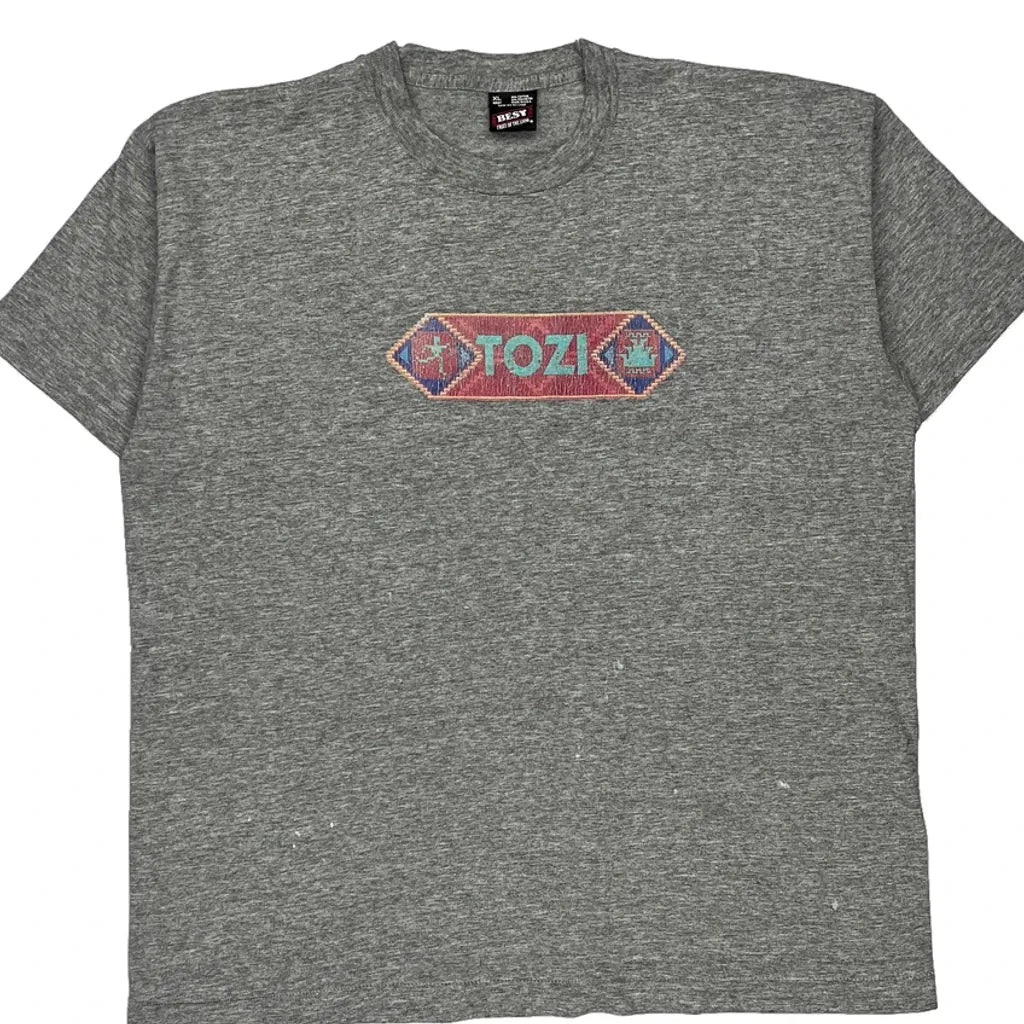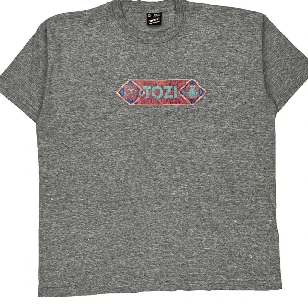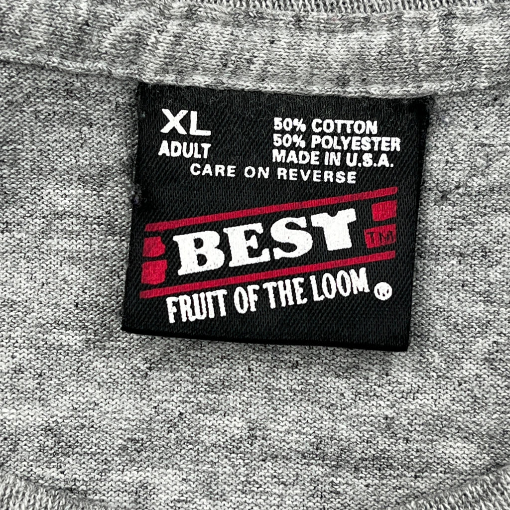 Single Stitch Fruit Of The Loom Graphic T-Shirt - XL Grey Cotton Blend
