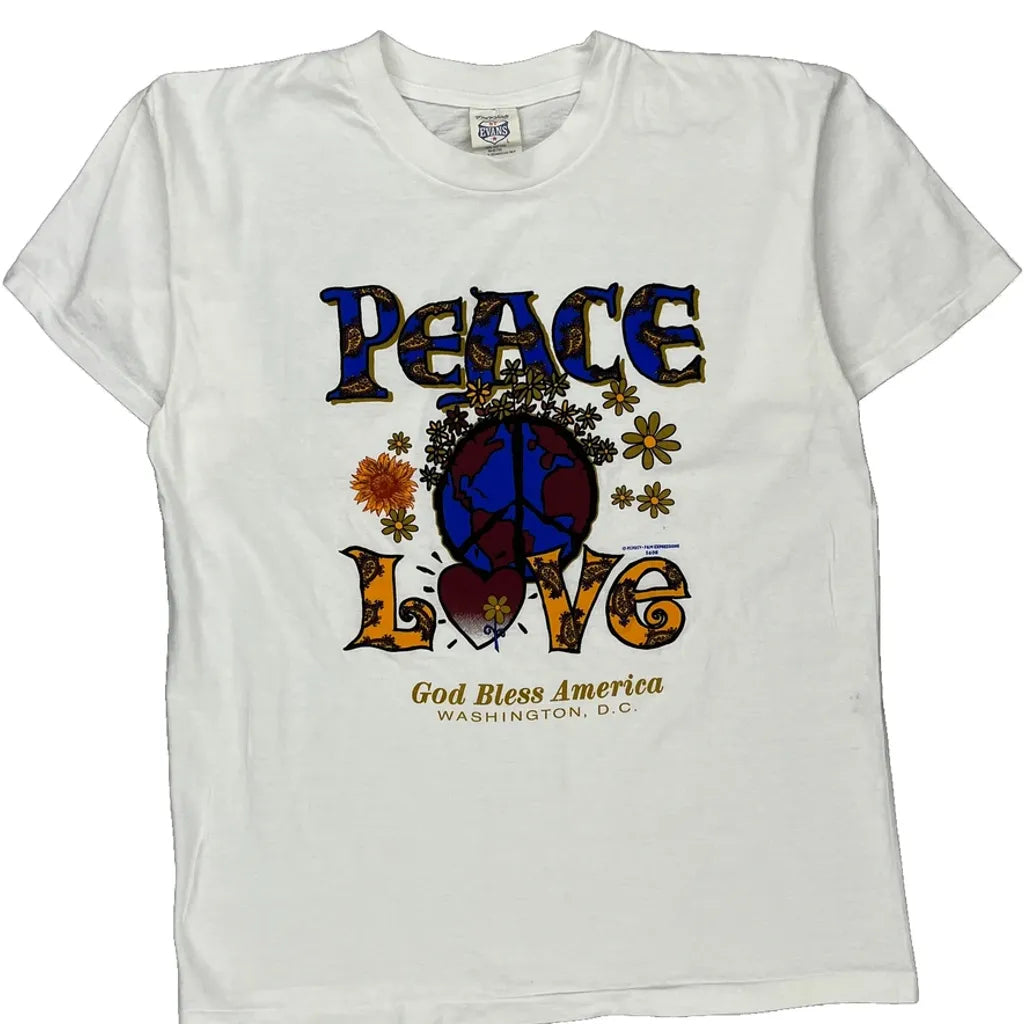 Single Stitch Peace Love St Evans Graphic T-Shirt - Large White Cotton