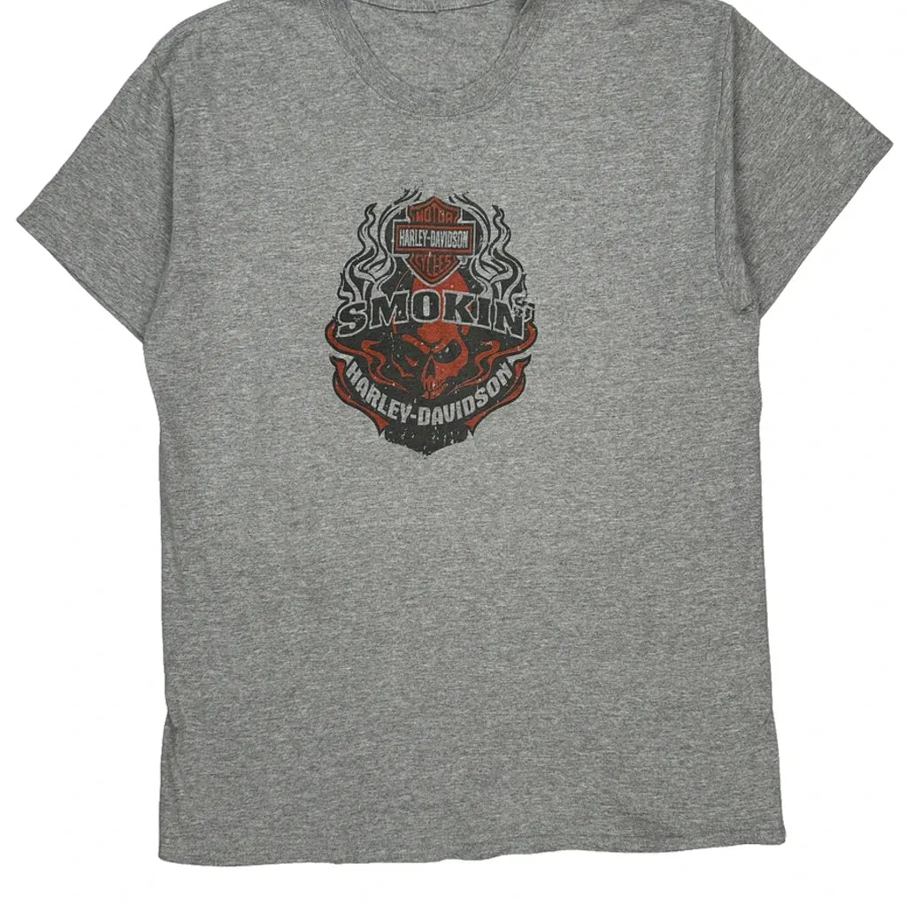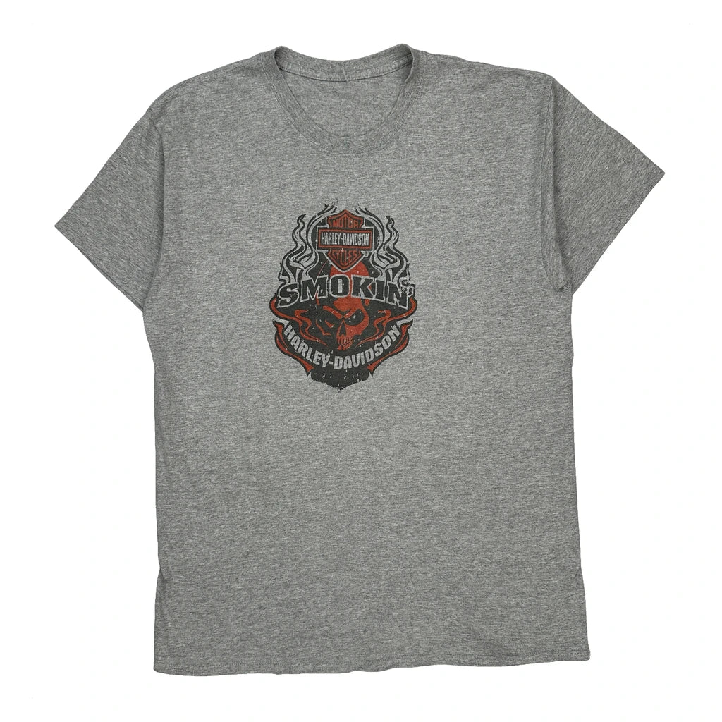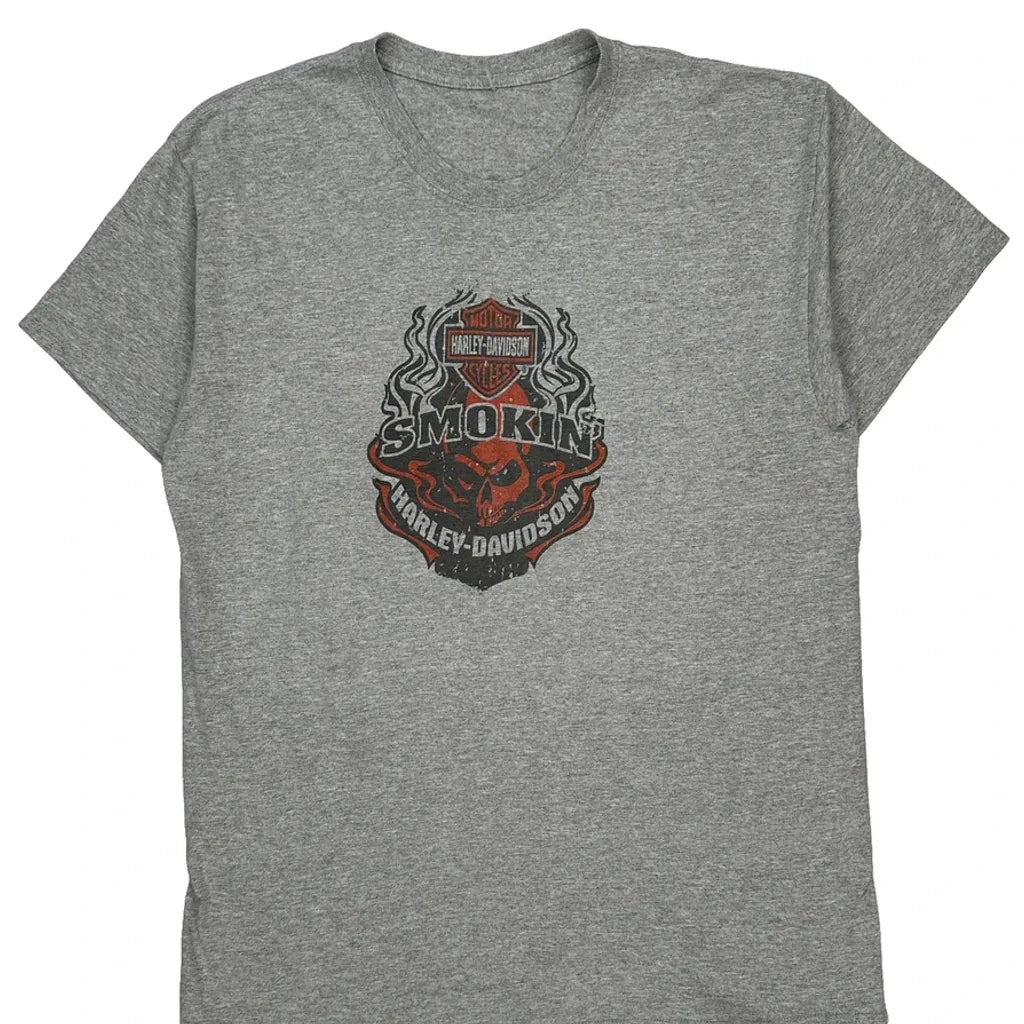 Smokin' Harley Davidson Graphic T-Shirt - Medium Grey Cotton