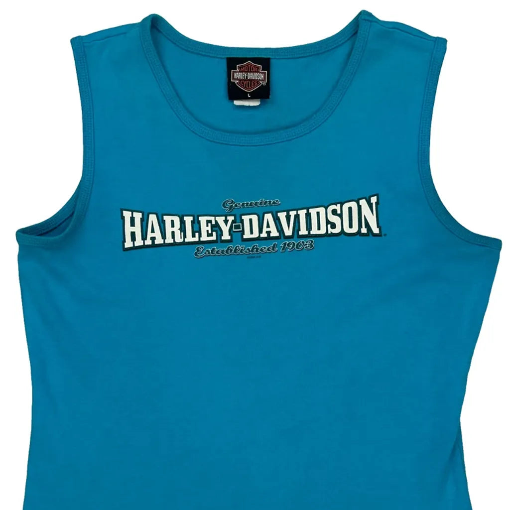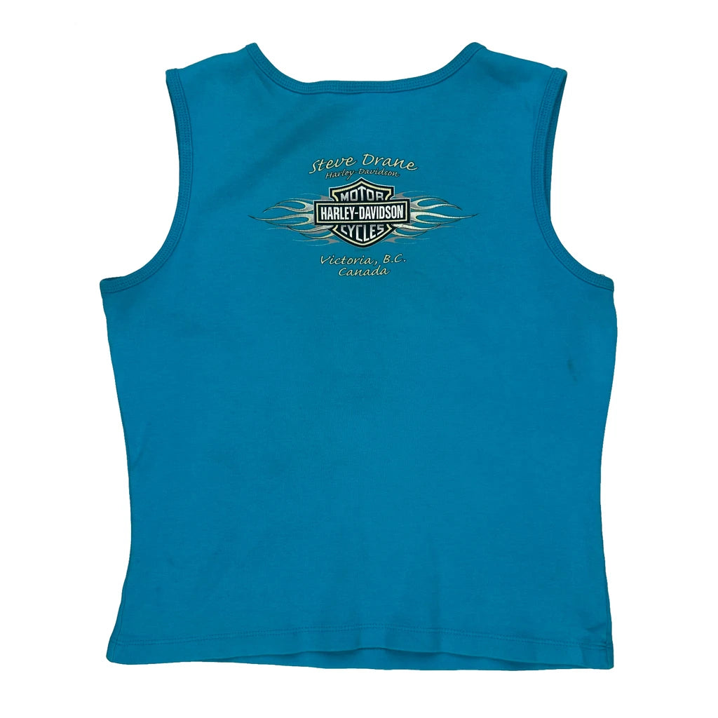 Steve Drane Harley Davidson Graphic Vest - Large Blue Cotton
