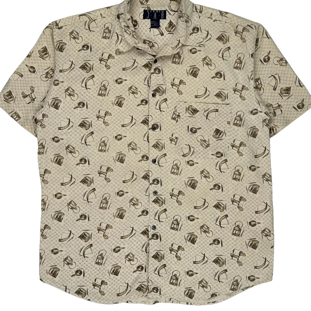 Studio Jab Patterned Shirt - XL Beige Silk