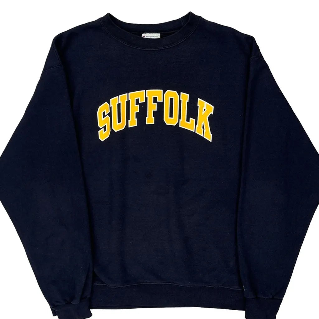 Suffolk Champion College Sweatshirt - XL Navy Cotton Blend