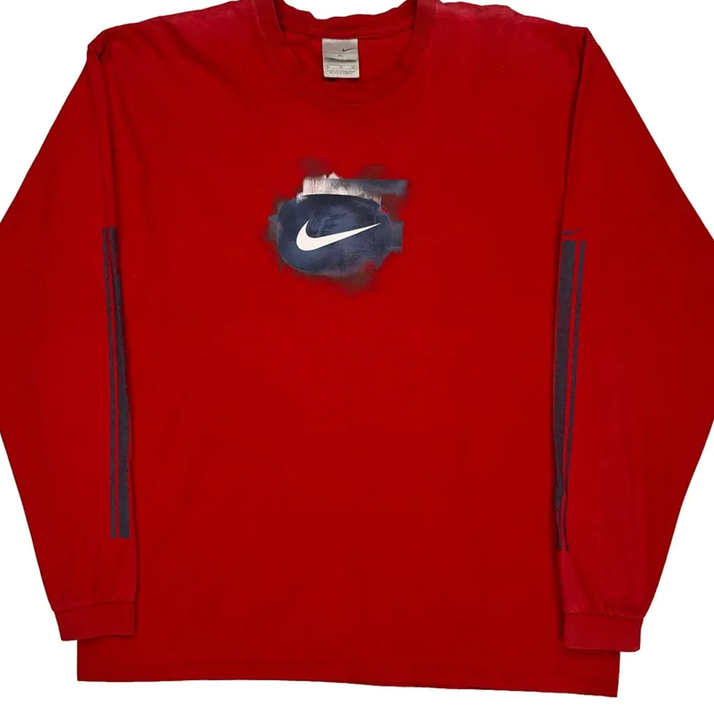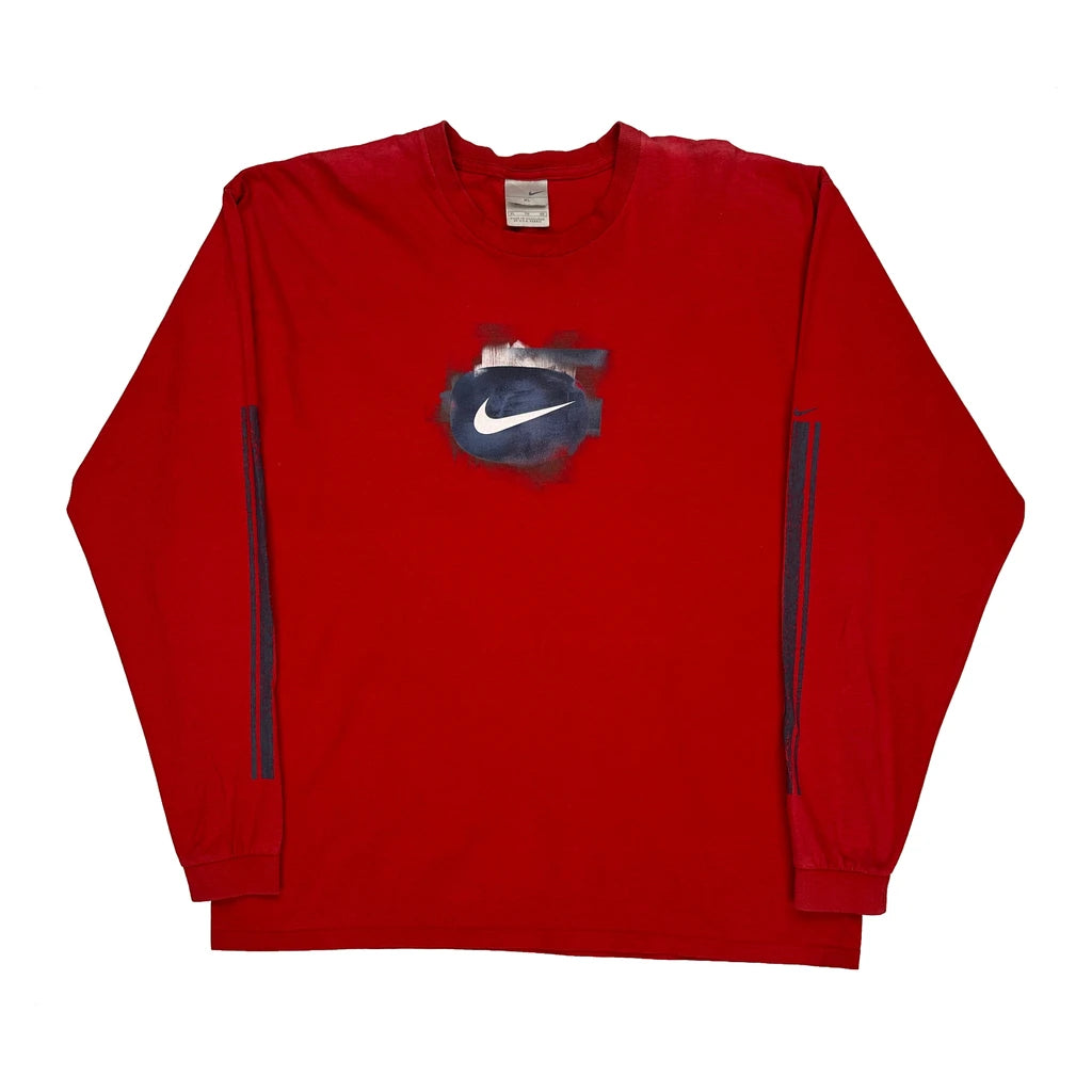 Swoosh Logo Nike Graphic Long Sleeve T-Shirt - XL Red Cotton
