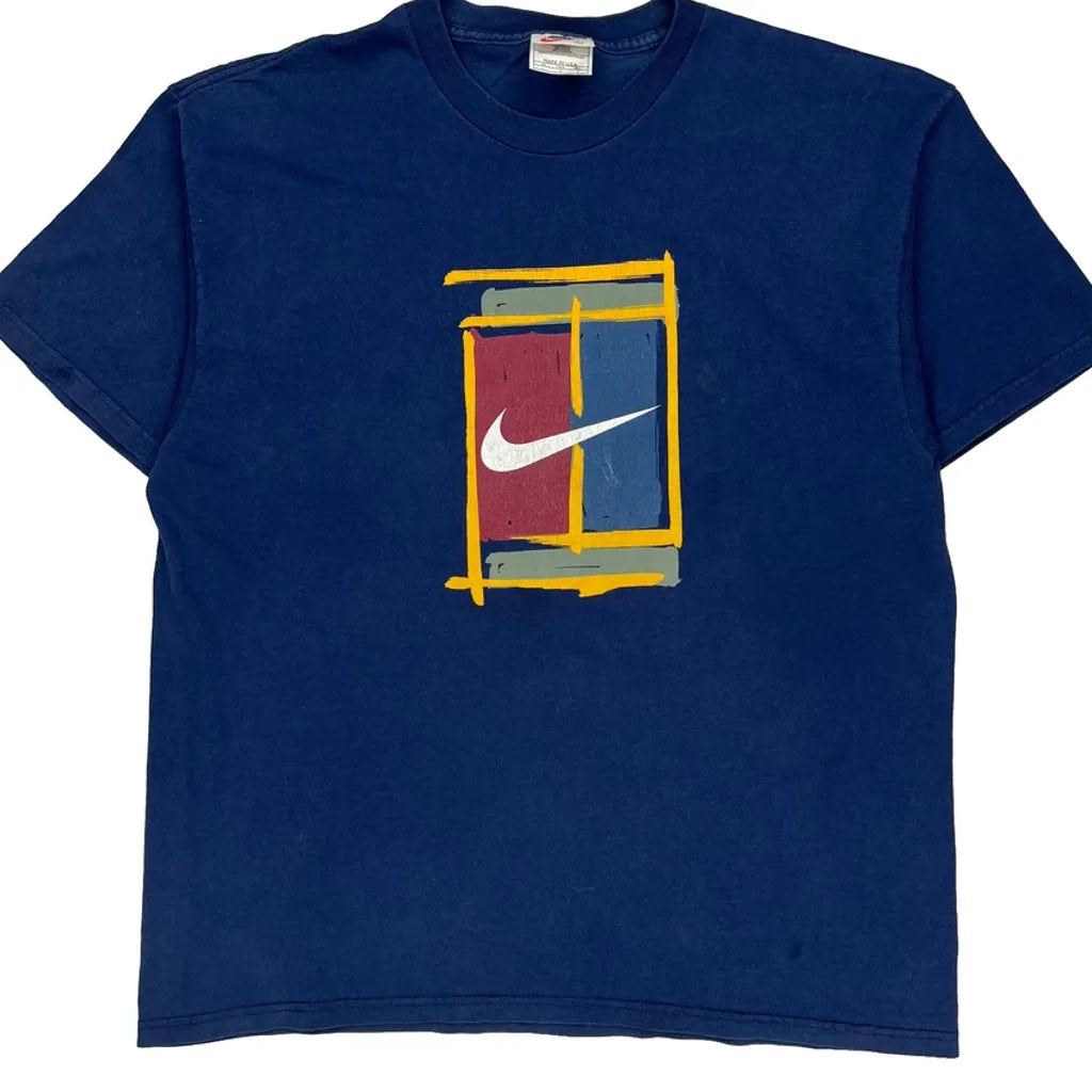 Swoosh Logo Nike Graphic T-Shirt - Large Blue Cotton