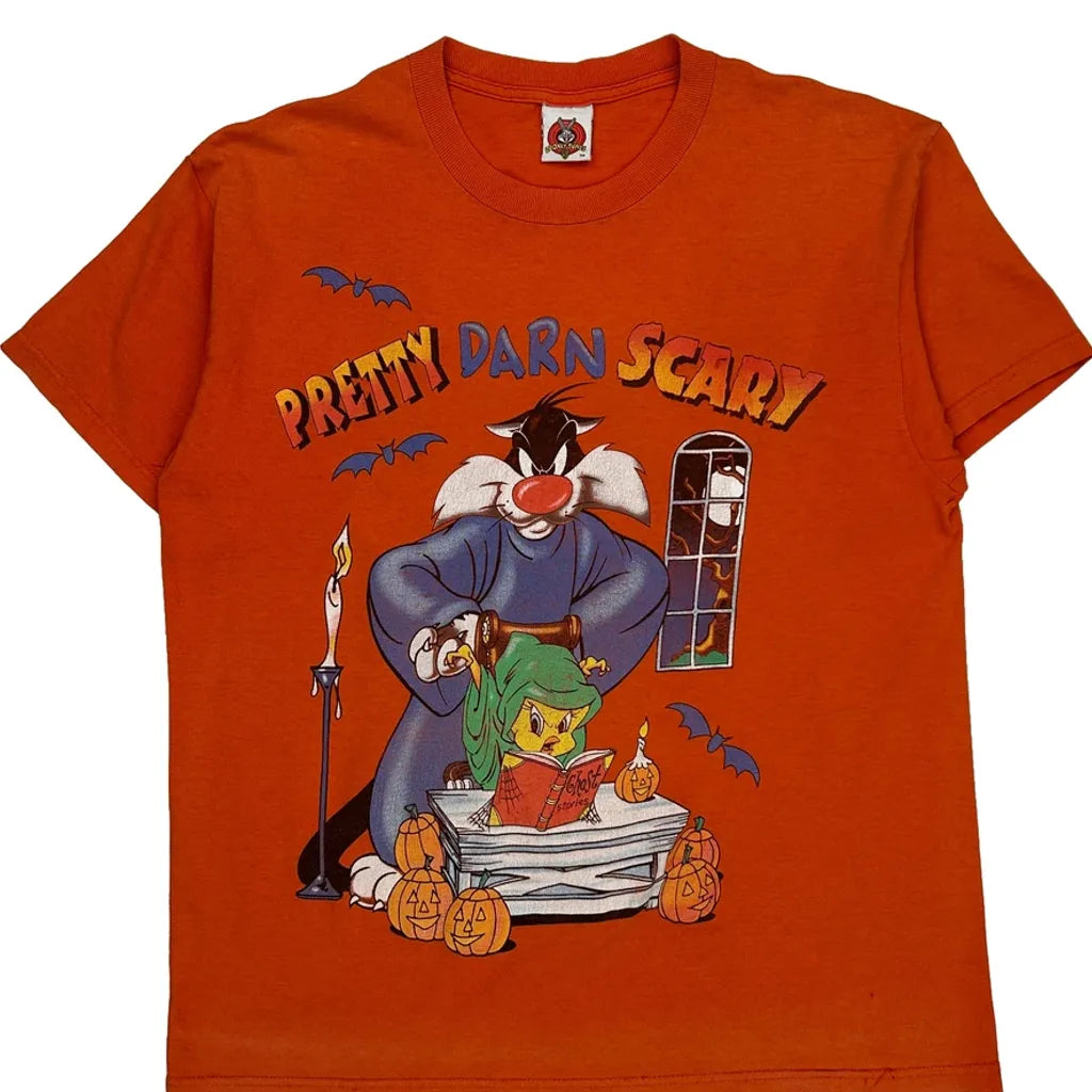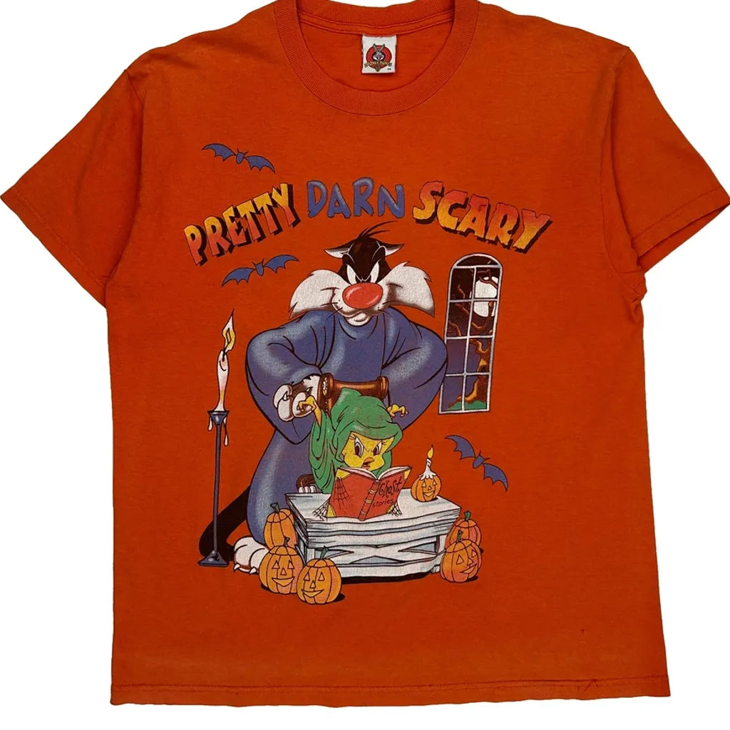 Sylvester And Tweety Looney Tunes Halloween T-Shirt - Large Orange Cotton