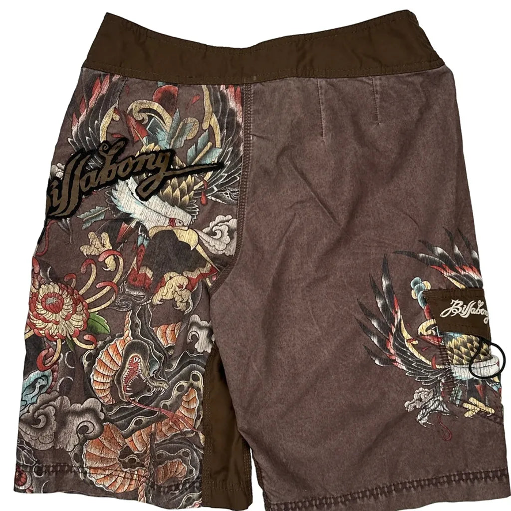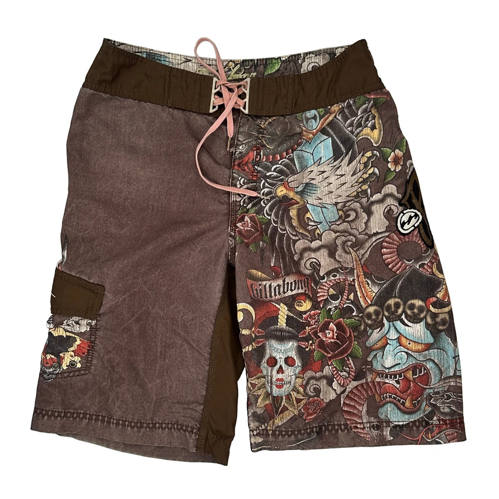 Tattoo-Inspired Design Billabong Graphic Shorts - 32″ Waist Brown Polyester