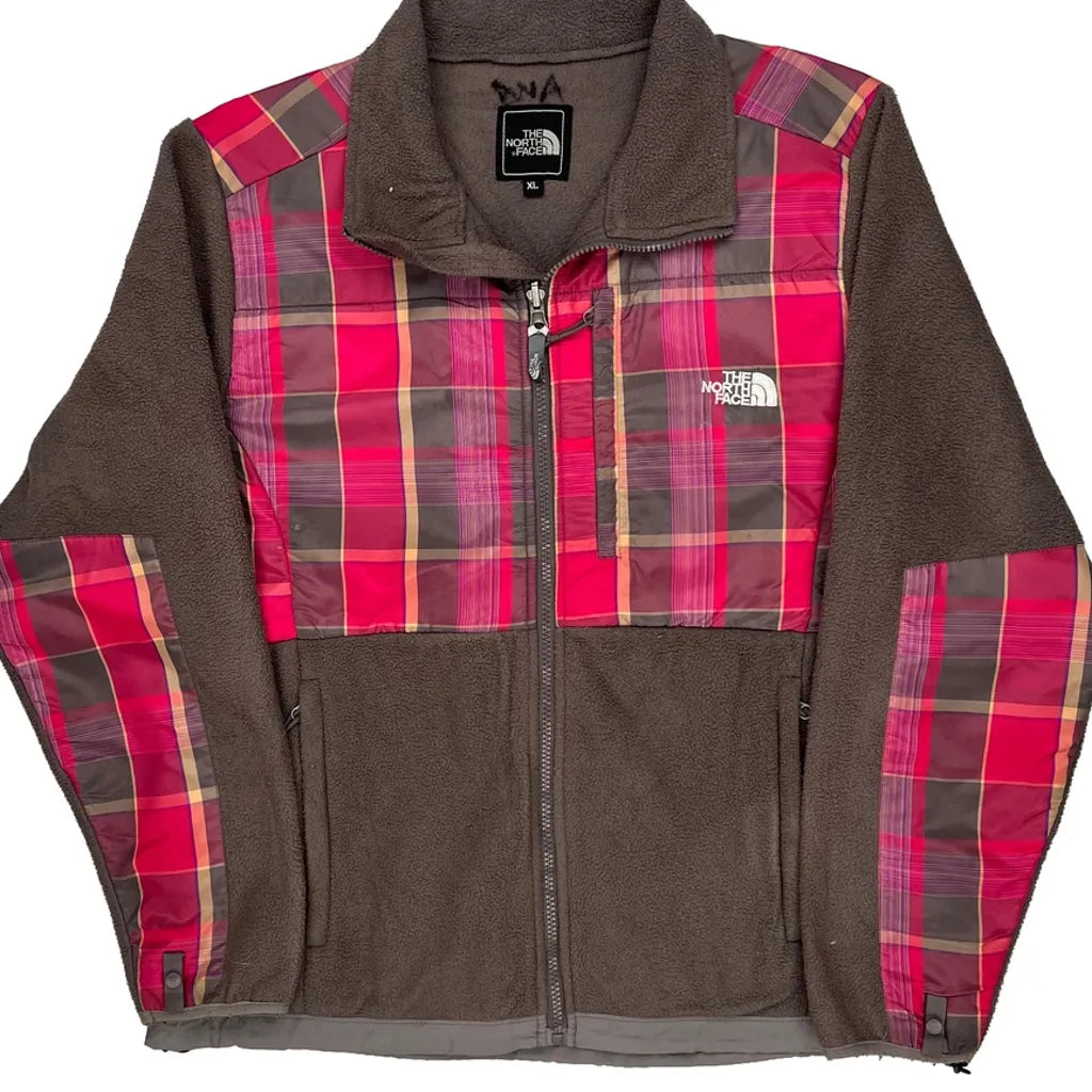The North Face Fleece Jacket With Checked Pattern And Minor Wear Marks.