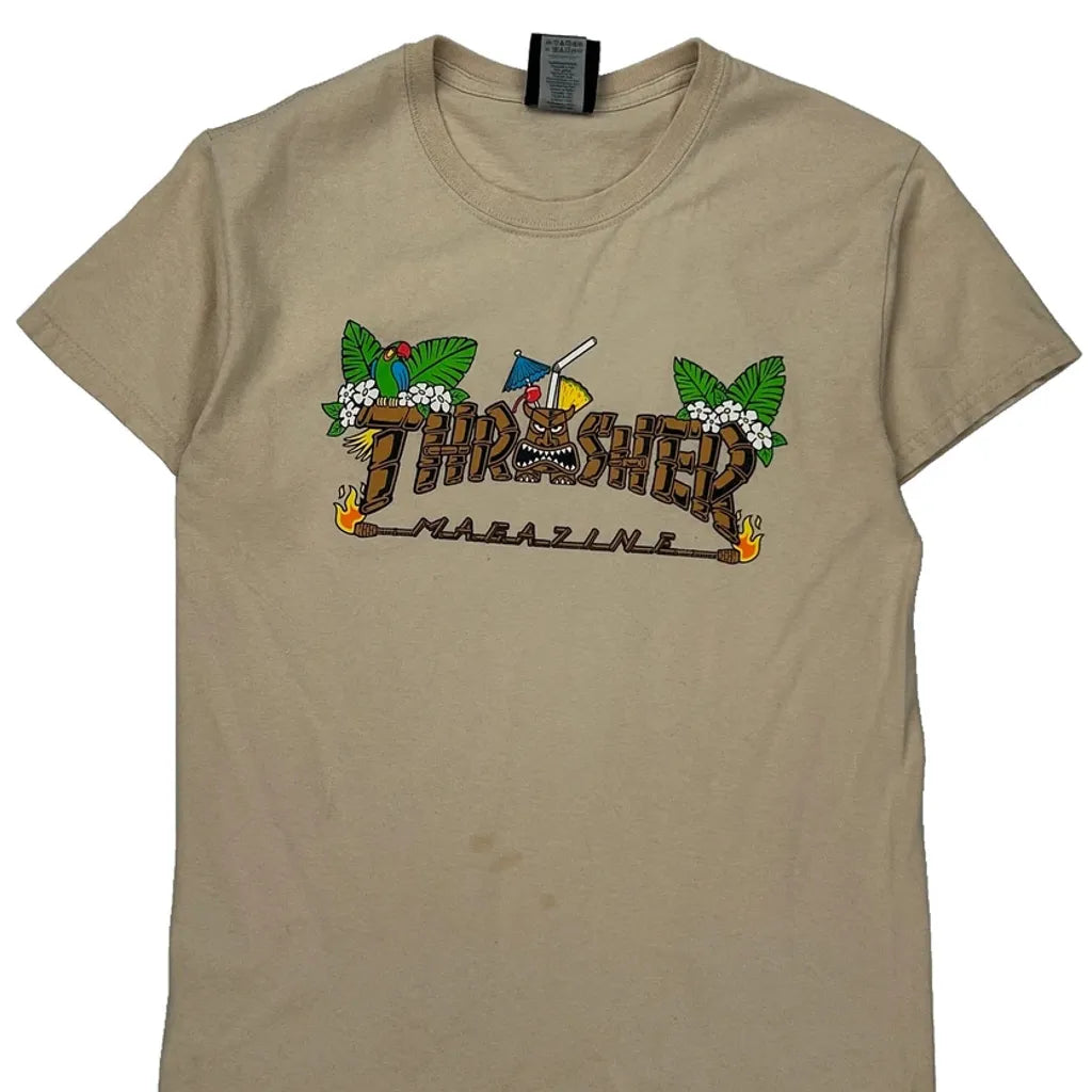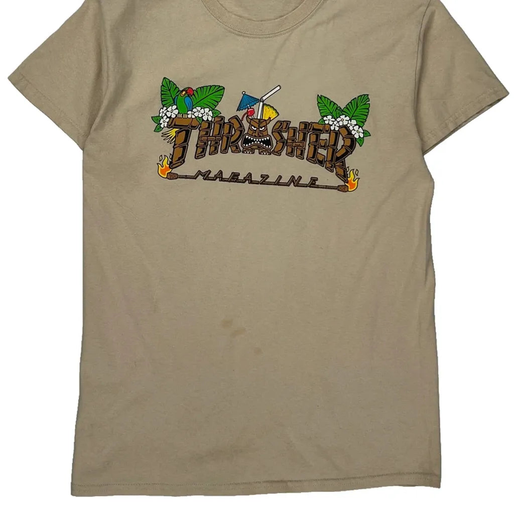 Thrasher Graphic T-Shirt - Small Beige Cotton