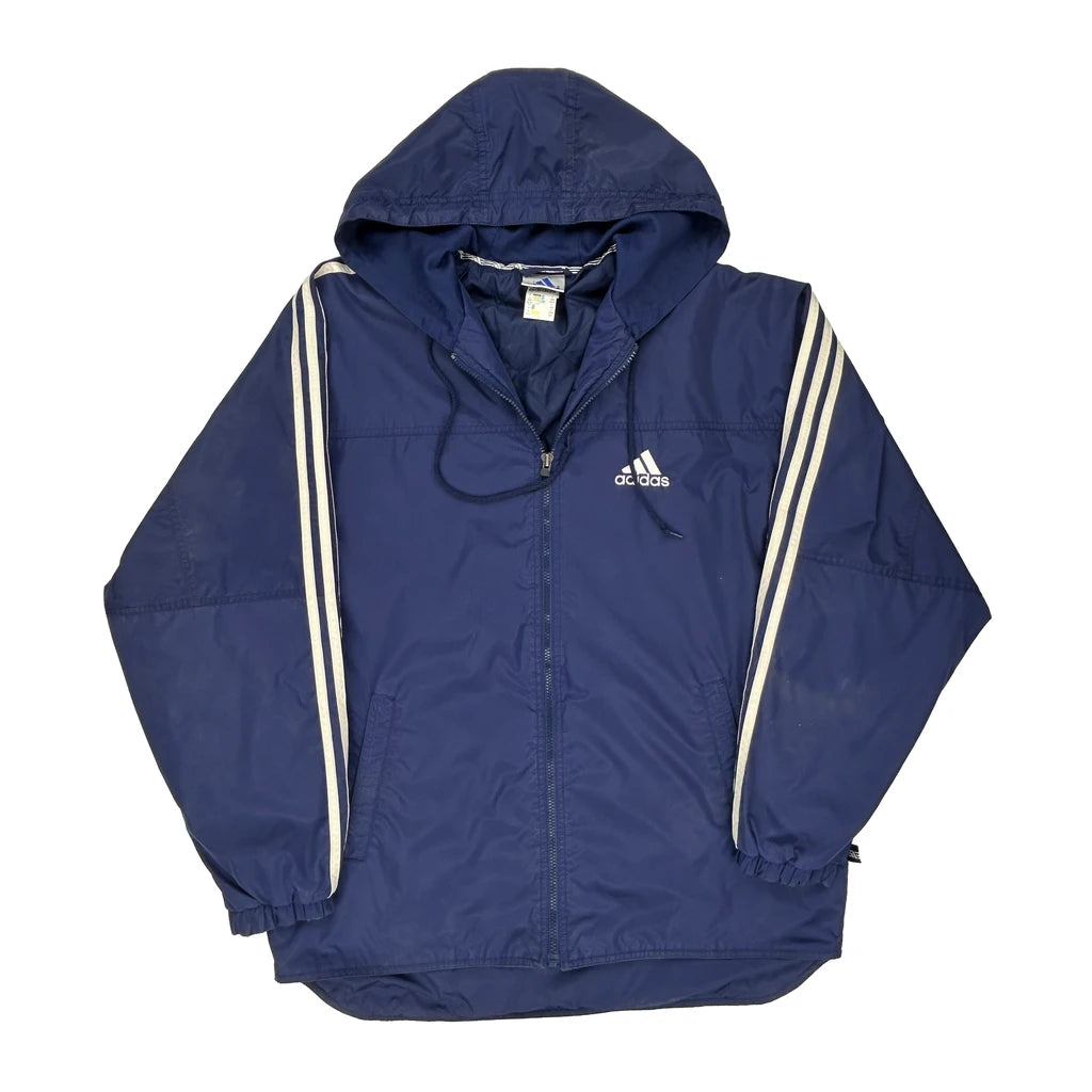 Three Stripes Adidas Striped Windbreaker - Small Blue Polyamide