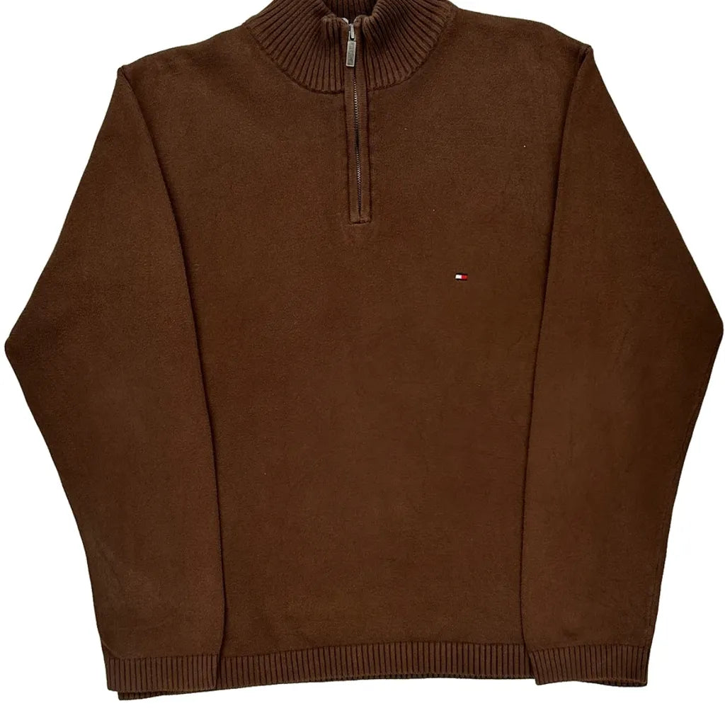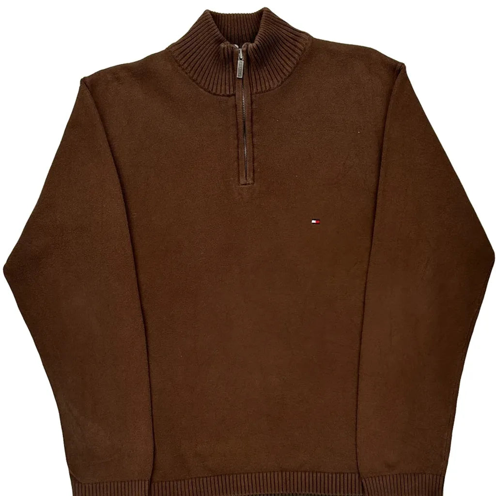 Tommy Hilfiger 1/4 Zip - Large Brown Cotton