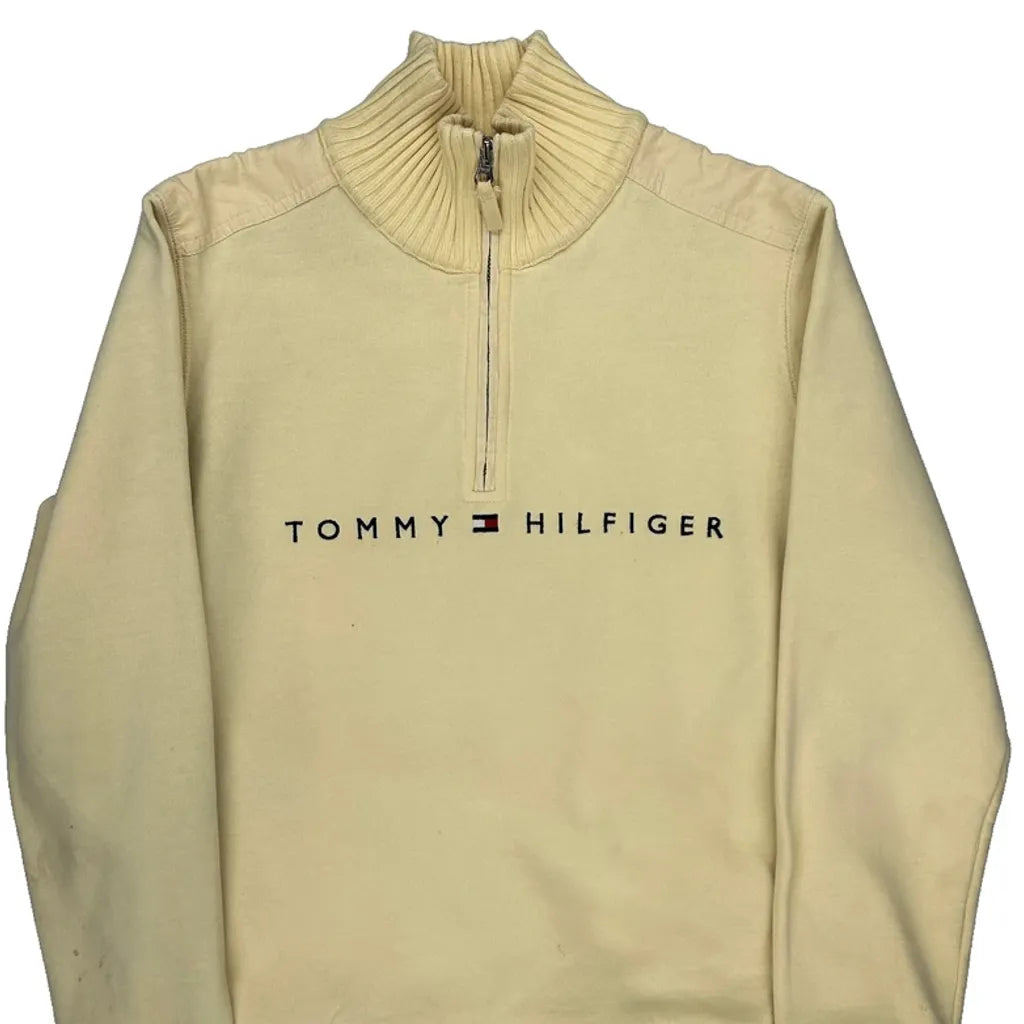 Tommy Hilfiger Spellout 1/4 Zip - Medium Cream Cotton