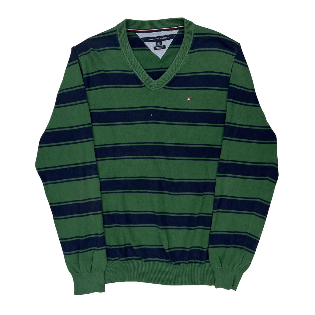 Tommy Hilfiger Striped Jumper - XL Green Cotton