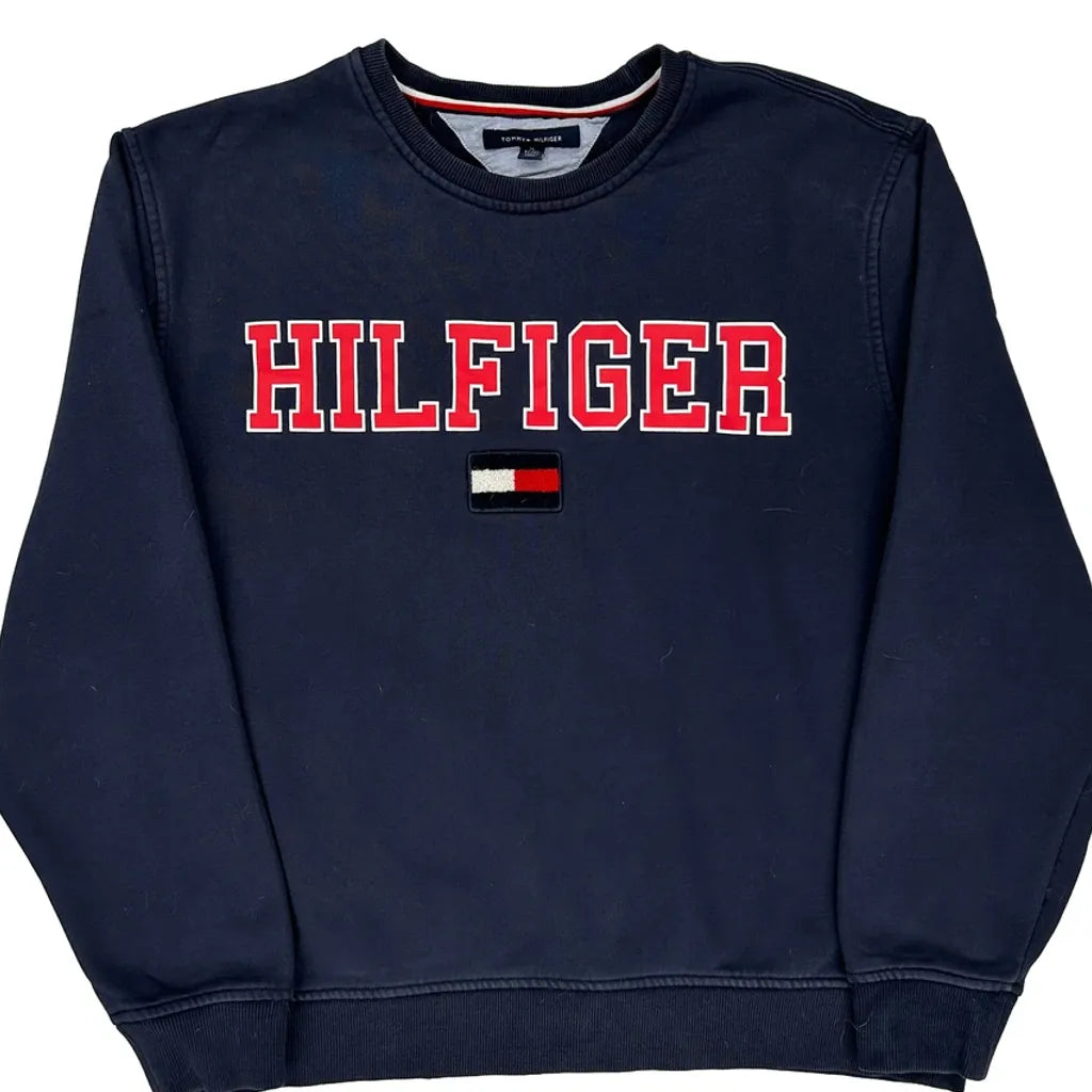 Tommy Hilfiger Spellout Long Sleeve T-Shirt - XL Navy Cotton