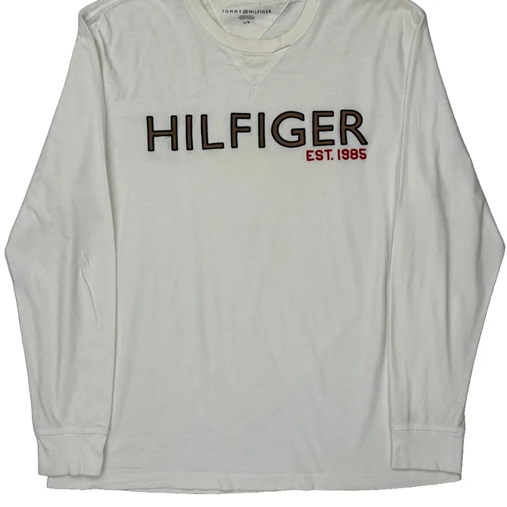 Tommy Hilfiger Spellout Long Sleeve T-Shirt - Large White Cotton