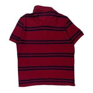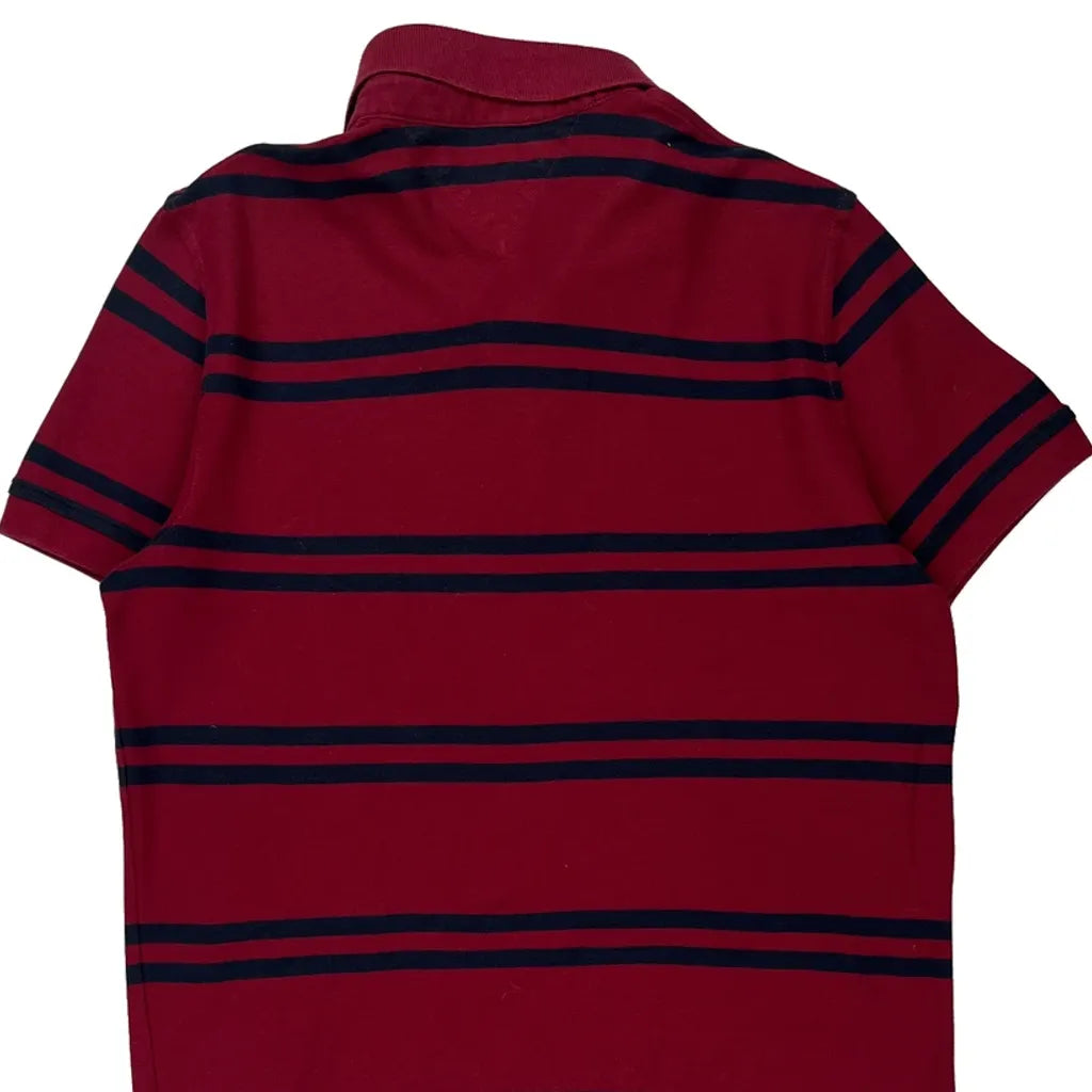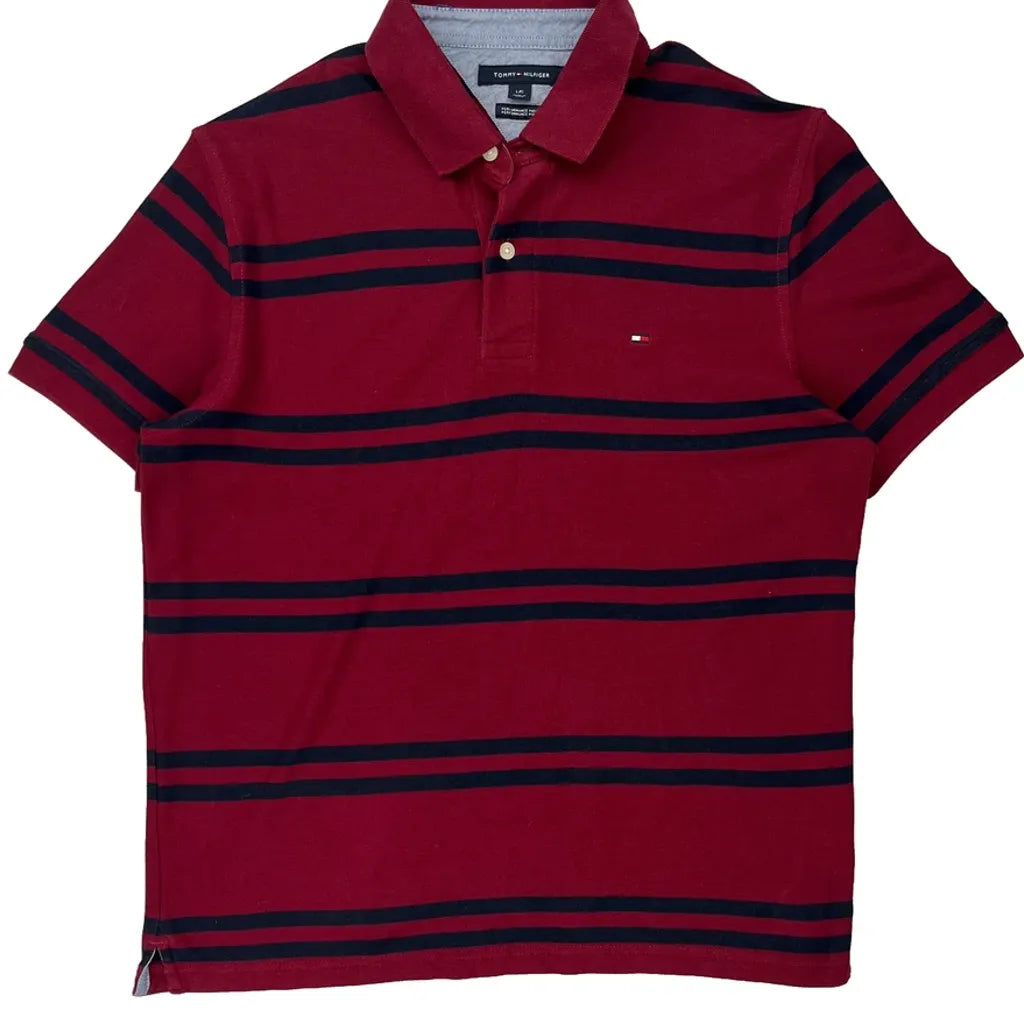 Tommy Hilfiger Striped Polo Shirt - Large Burgundy Cotton