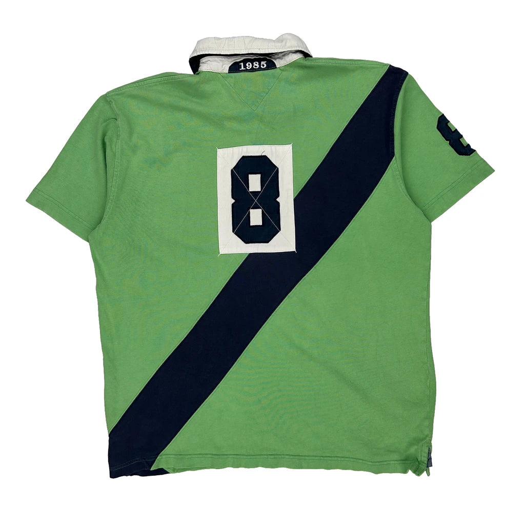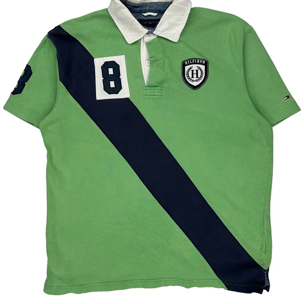 Tommy Hilfiger Striped Polo Shirt - Large Green Cotton