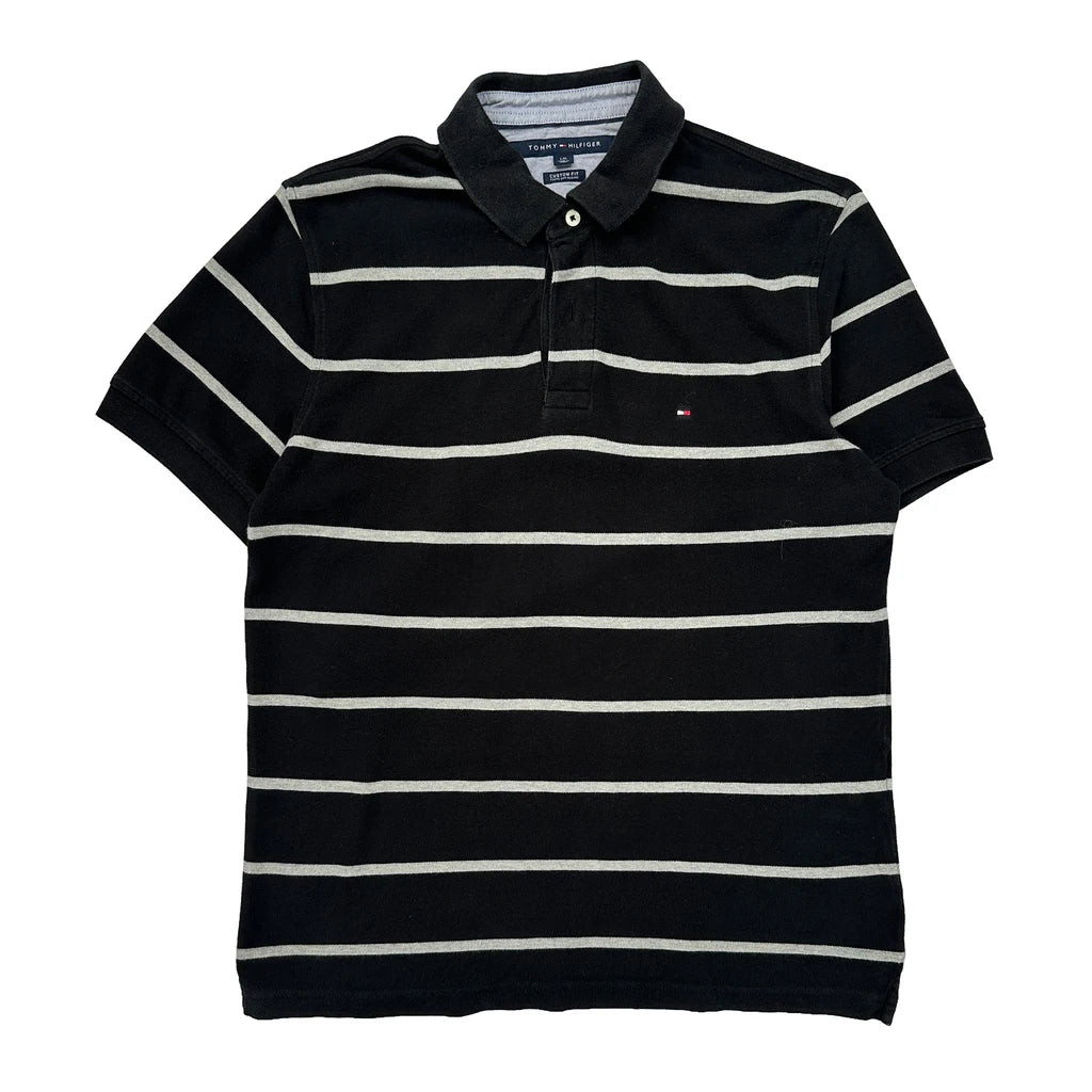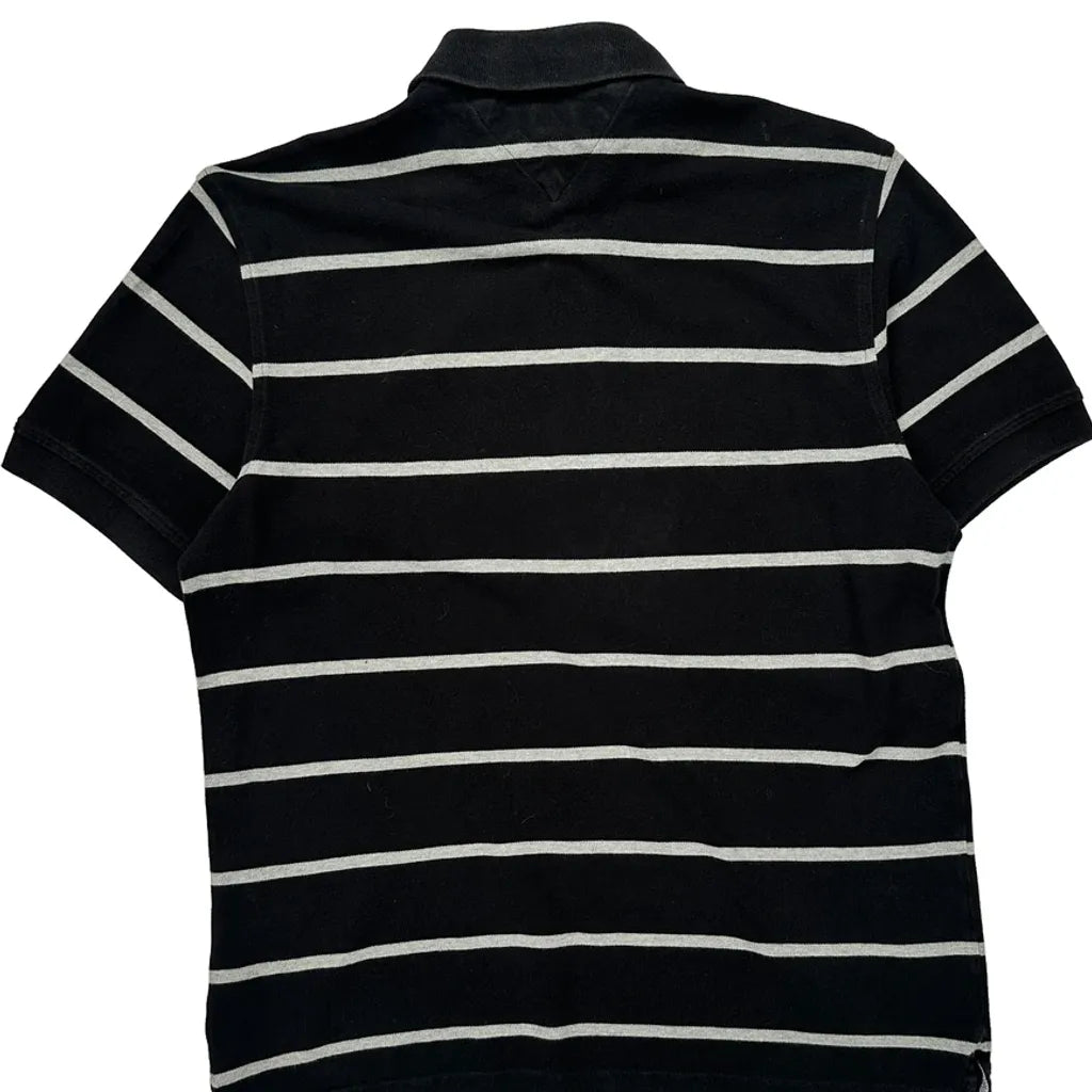 Tommy Hilfiger Striped Polo Shirt - Large Grey Cotton