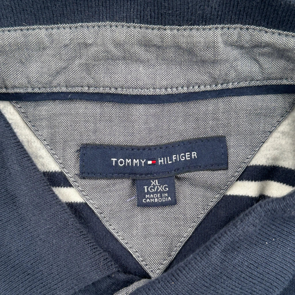 Tommy Hilfiger Striped Polo Shirt - XL Grey Cotton