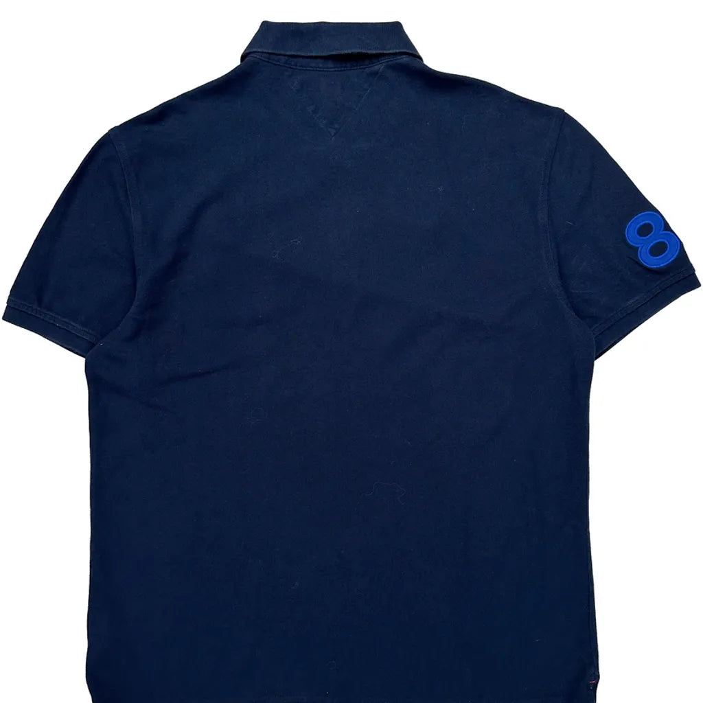 Navy Polo Shirt With H Logo And Number Patches On Sleeves