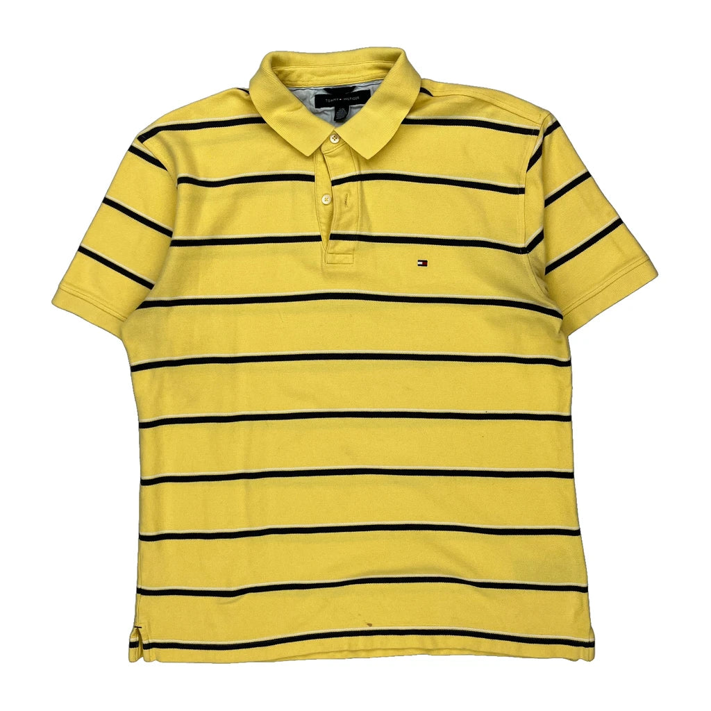 Tommy Hilfiger Striped Polo Shirt - Large Yellow Cotton