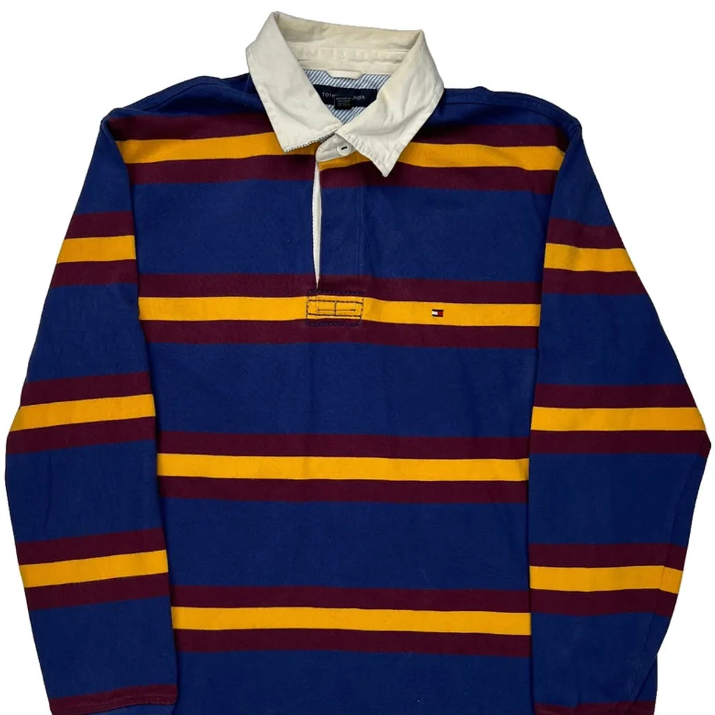 Tommy Hilfiger Striped Rugby Shirt - Medium Blue Cotton