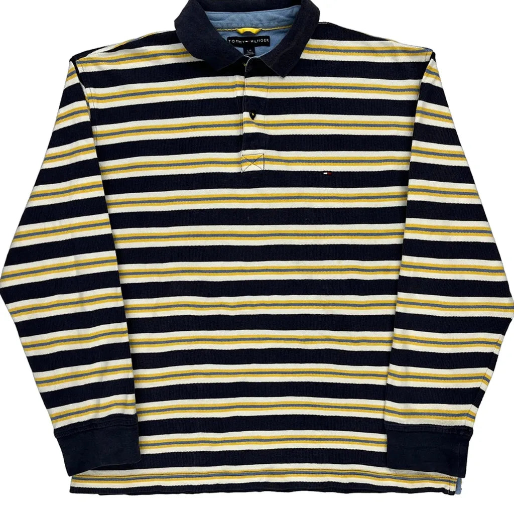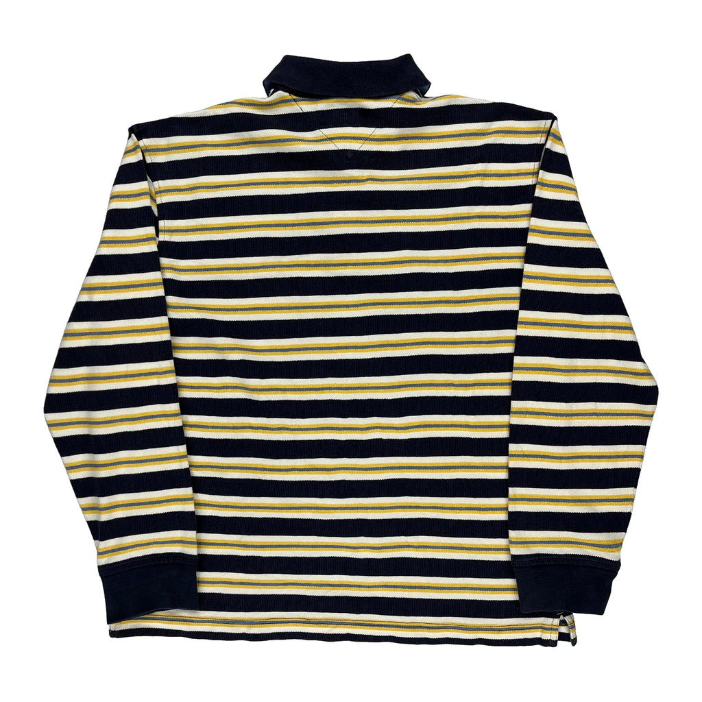 Tommy Hilfiger Striped Rugby Shirt - Large Navy Cotton