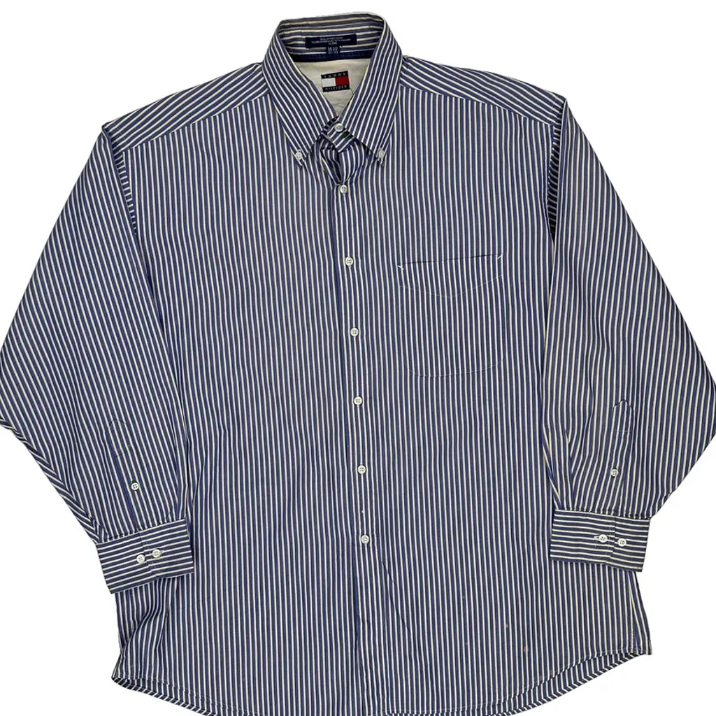Tommy Hilfiger Striped Shirt - Large Blue Cotton