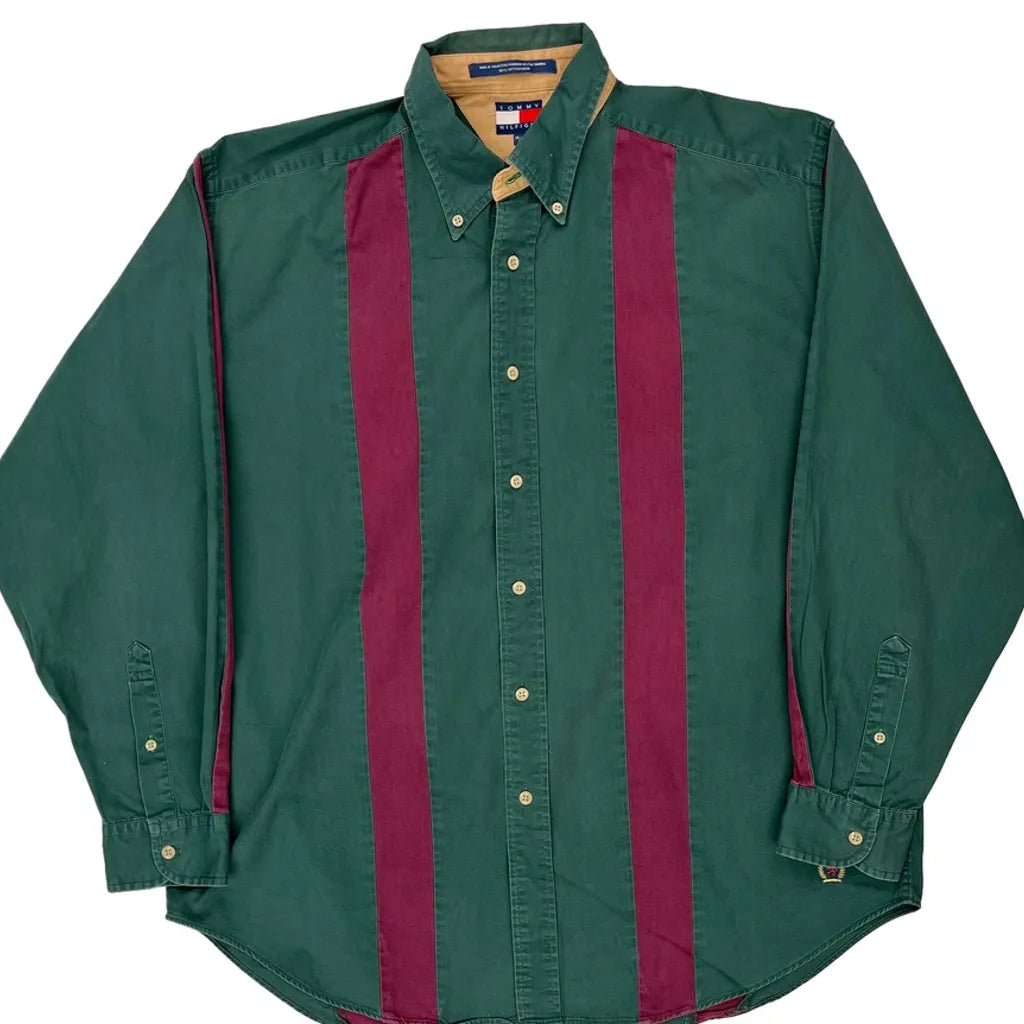 Tommy Hilfiger Striped Shirt - Medium Green Cotton