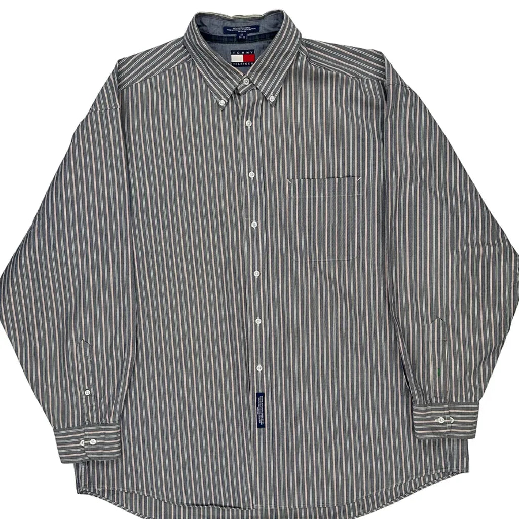 Tommy Hilfiger Striped Shirt - 2XL Grey Cotton