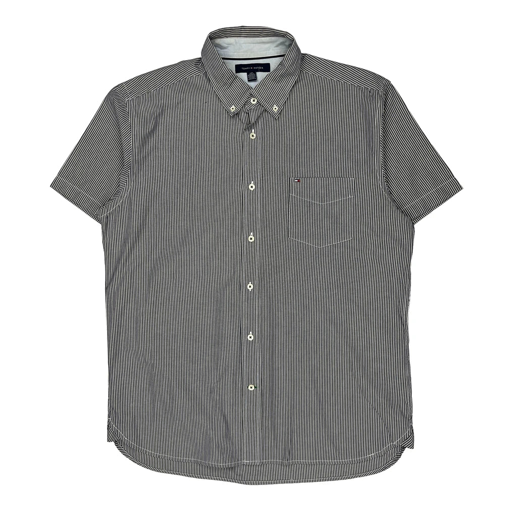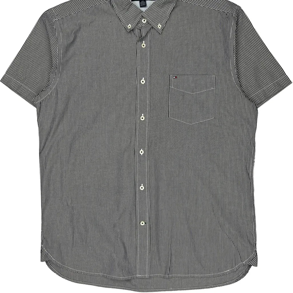 Tommy Hilfiger Striped Short Sleeve Shirt - Large Black & White Cotton