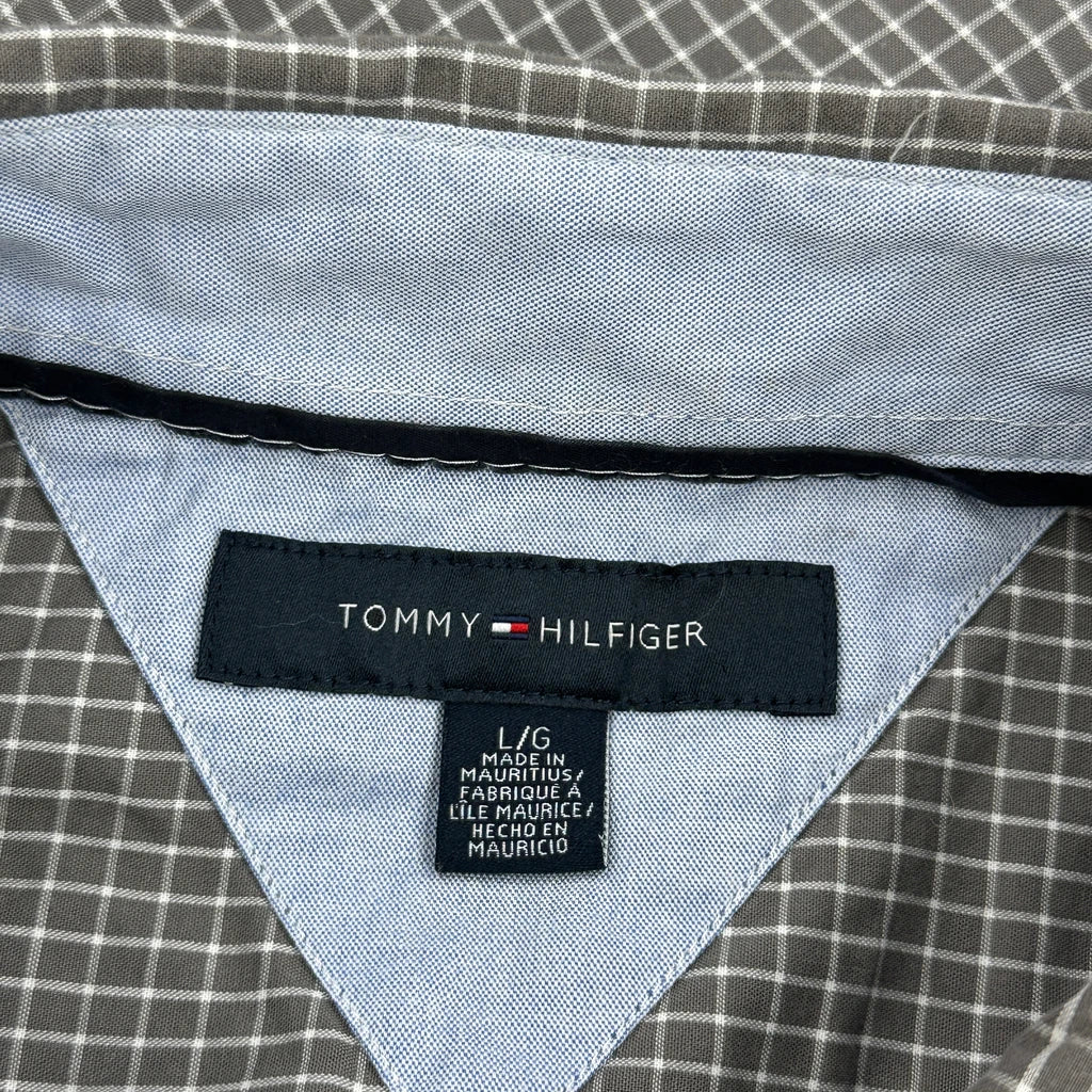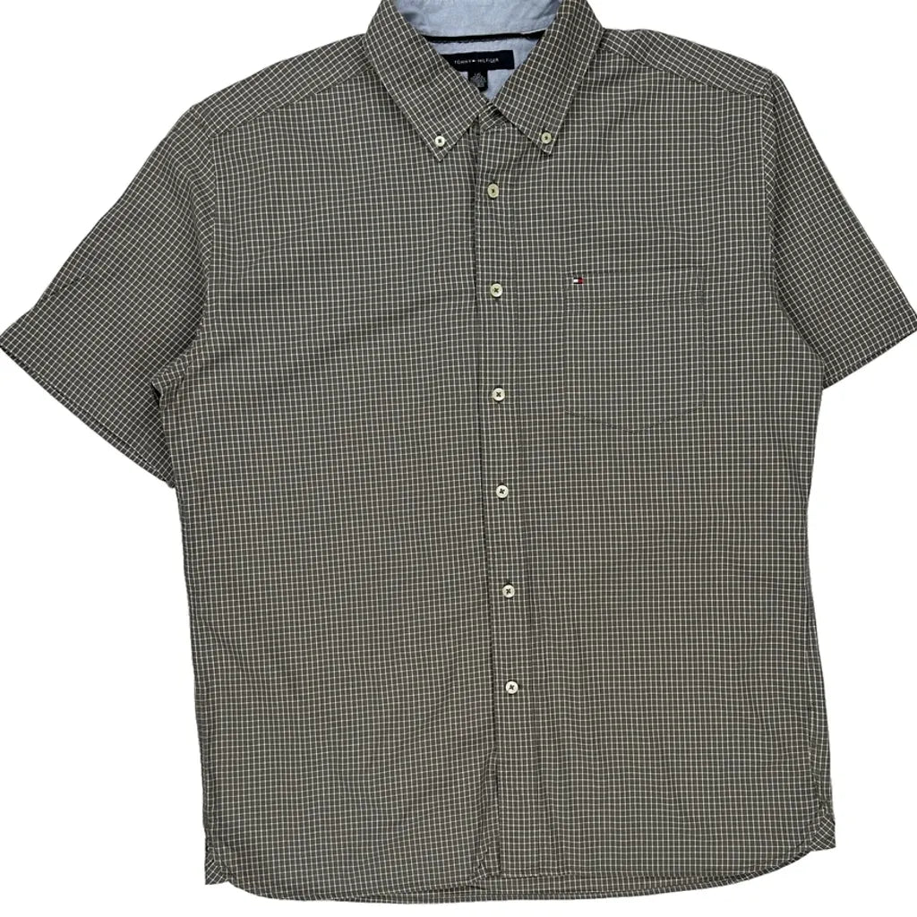 Tommy Hilfiger Checked Short Sleeve Shirt - Large Grey Cotton