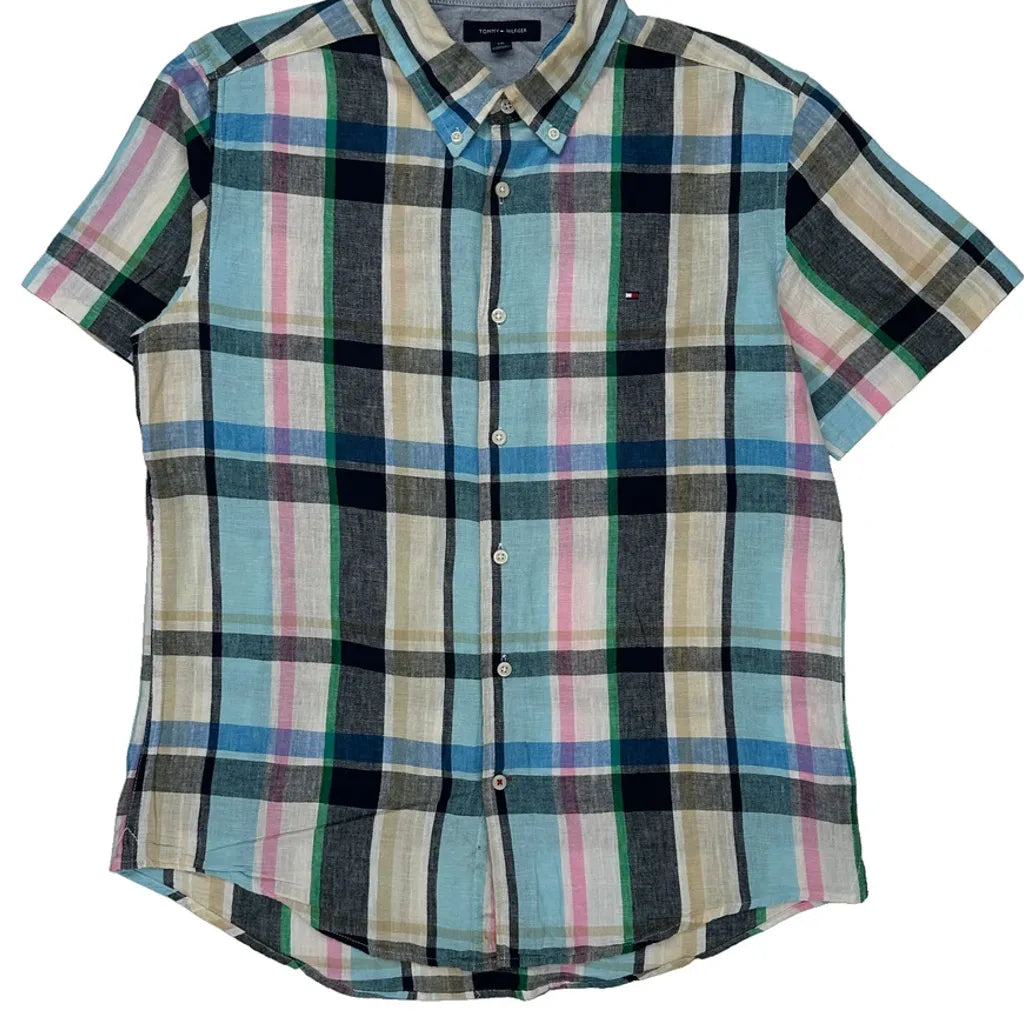 Tommy Hilfiger Checked Short Sleeve Shirt - Large Multicoloured Cotton