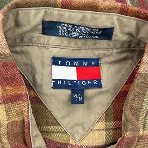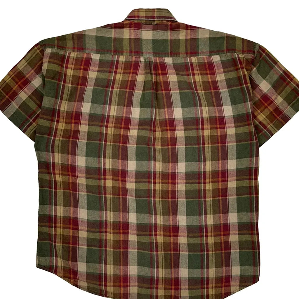 Tommy Hilfiger Checked Short Sleeve Shirt - Medium Multicoloured Linen Blend