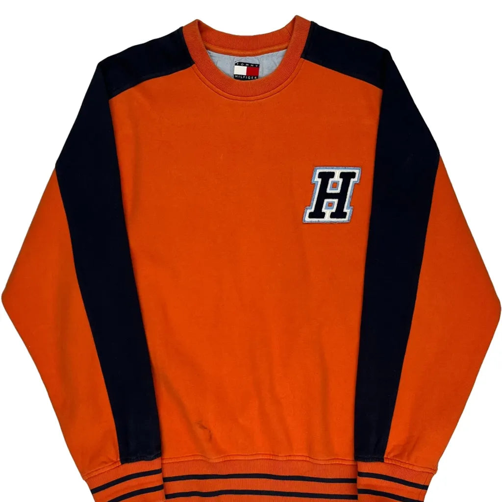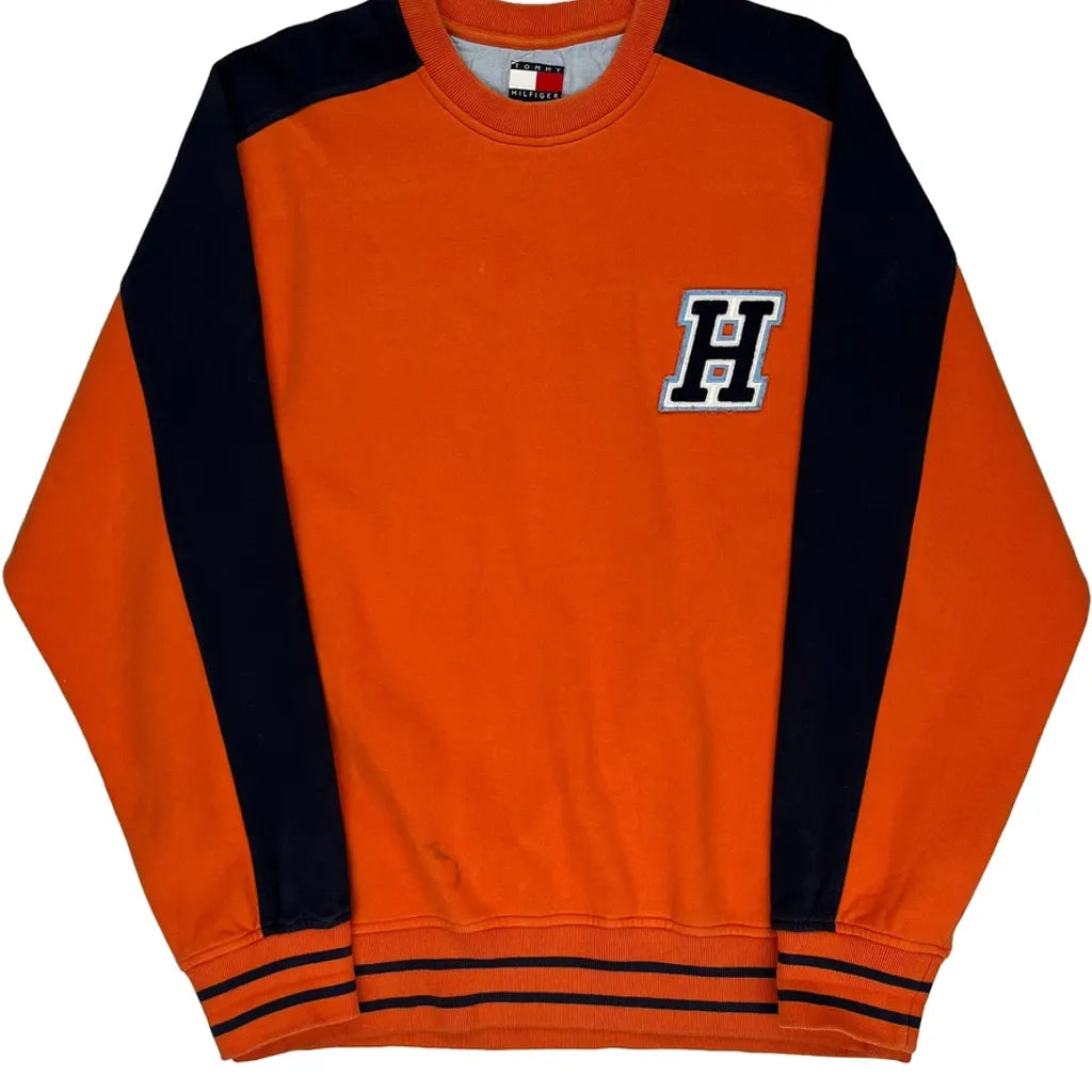 Tommy Hilfiger Spellout Sweatshirt - XL Orange Cotton Blend