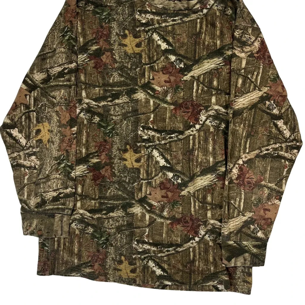 Tru Fit Camo Long Sleeve T-Shirt - Medium Green Cotton Blend