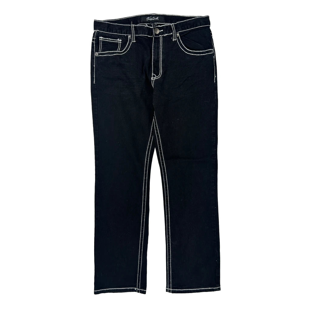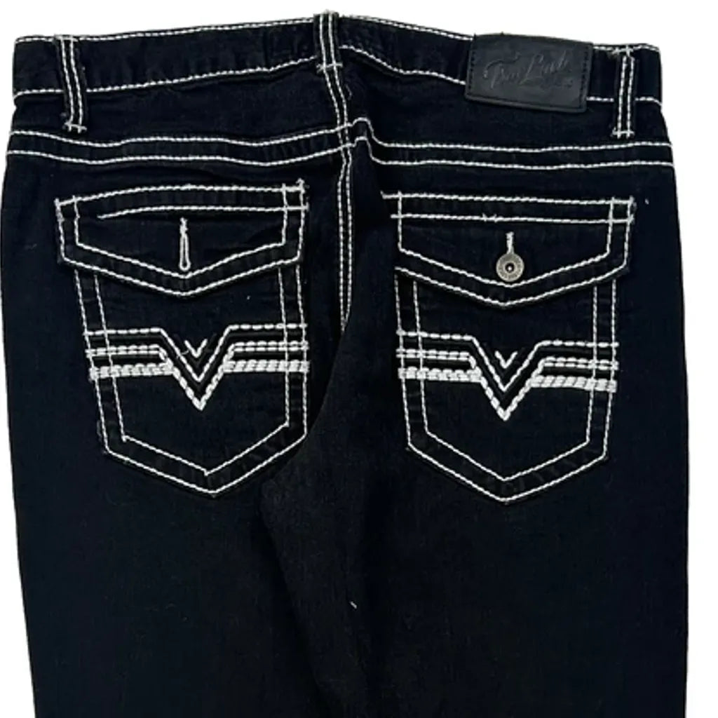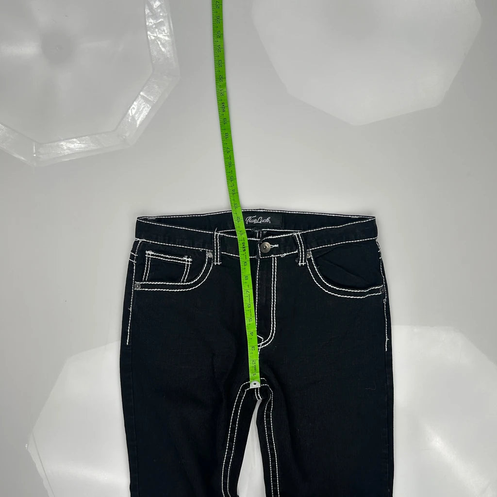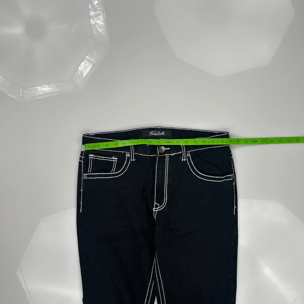 True Luck Contrast Stitch Jeans - 34W UK 12 Black Cotton Blend