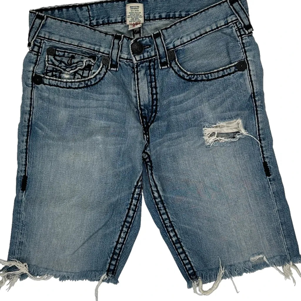 True Religion Denim Shorts - 36W 11L Light Wash Cotton