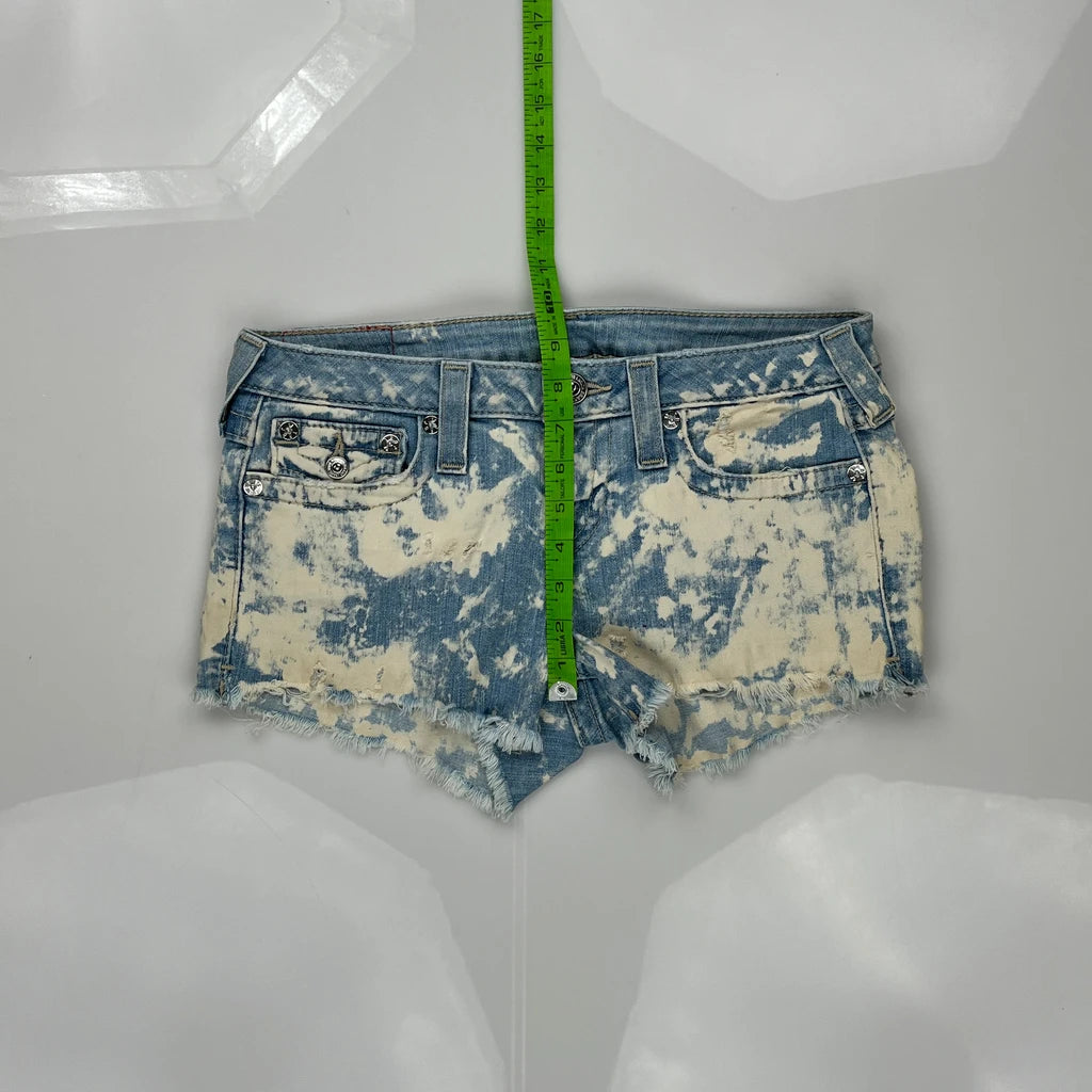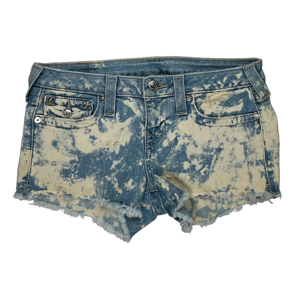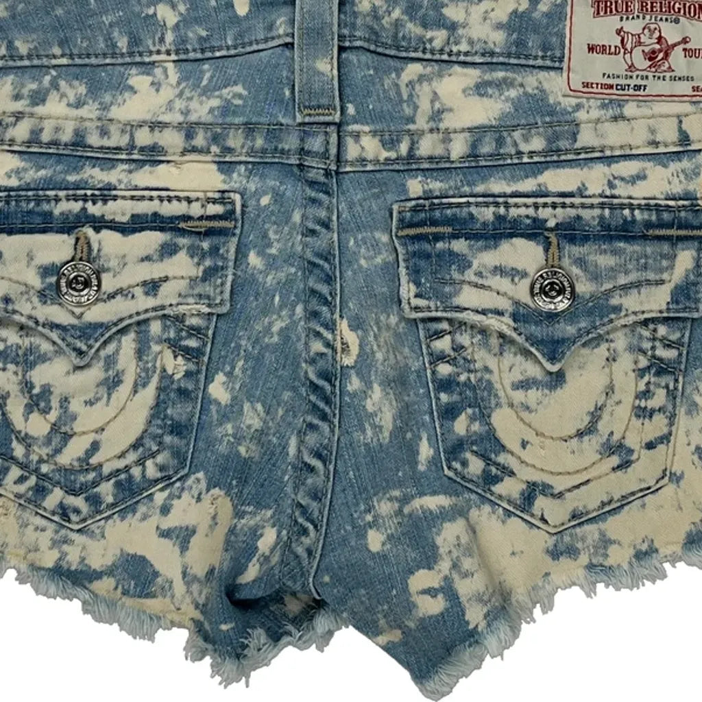 True Religion Denim Shorts - 30W UK 6 Acid Wash Denim