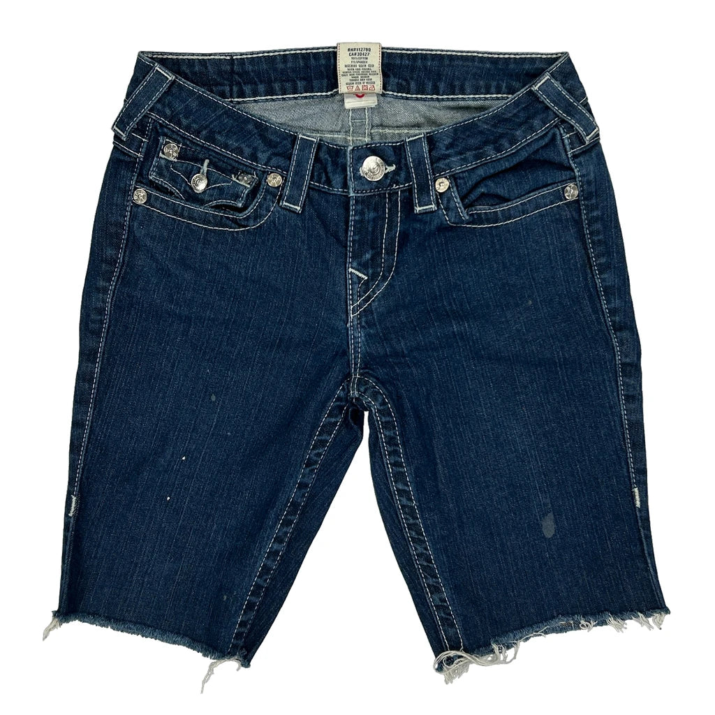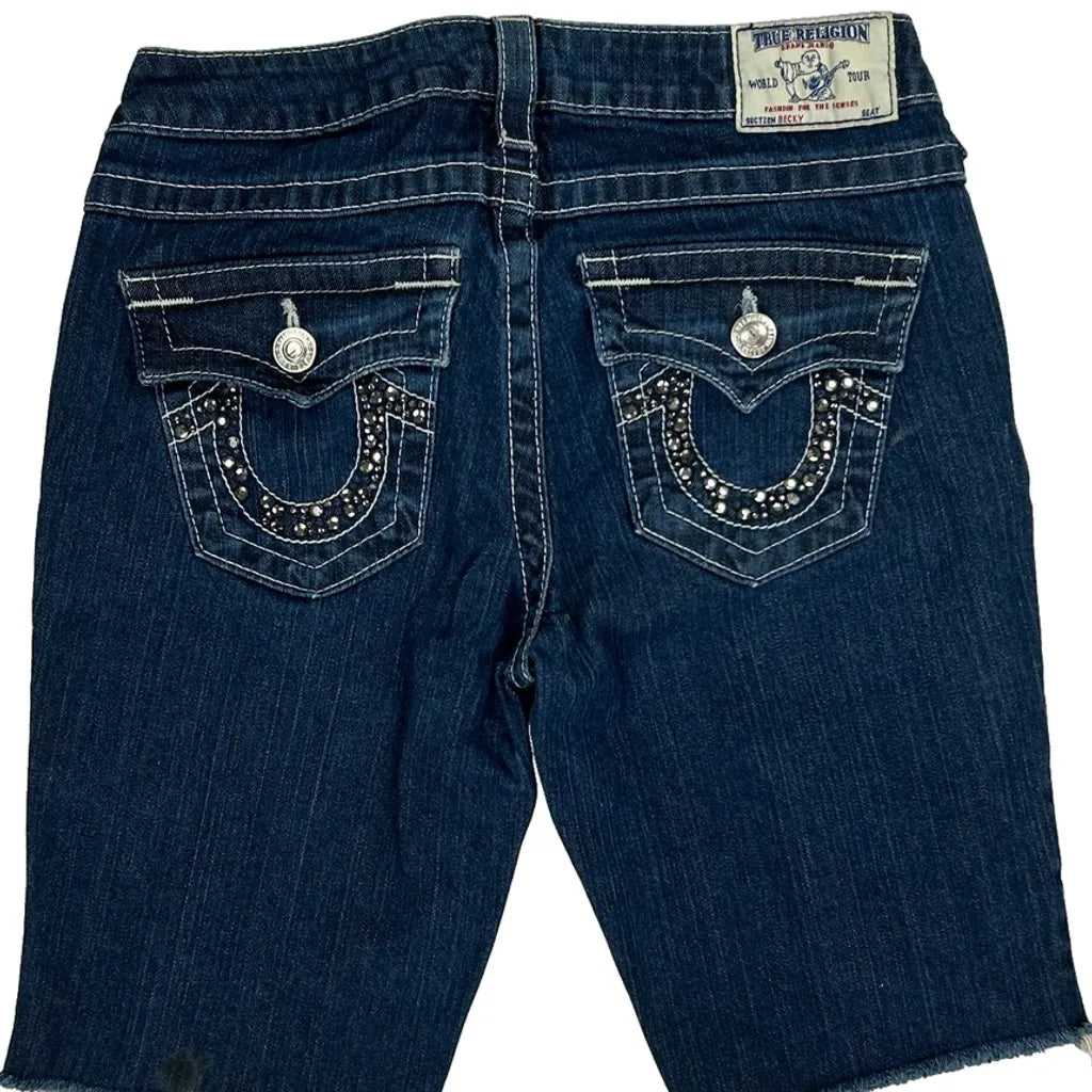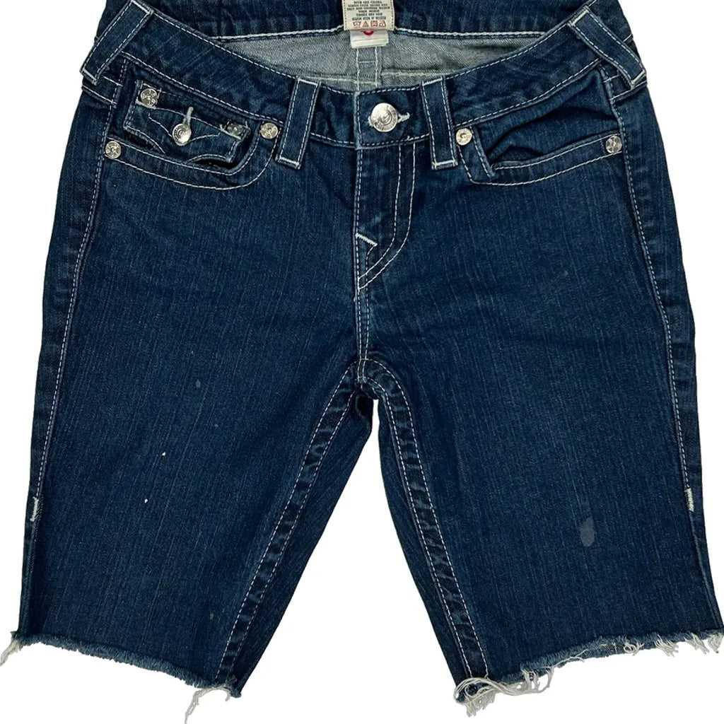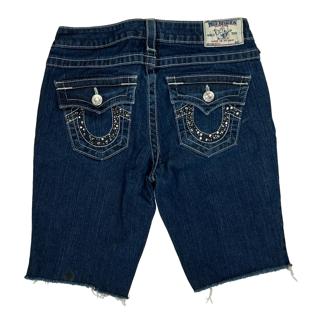True Religion Studded Denim Shorts - 28W UK 6 Dark Wash Denim