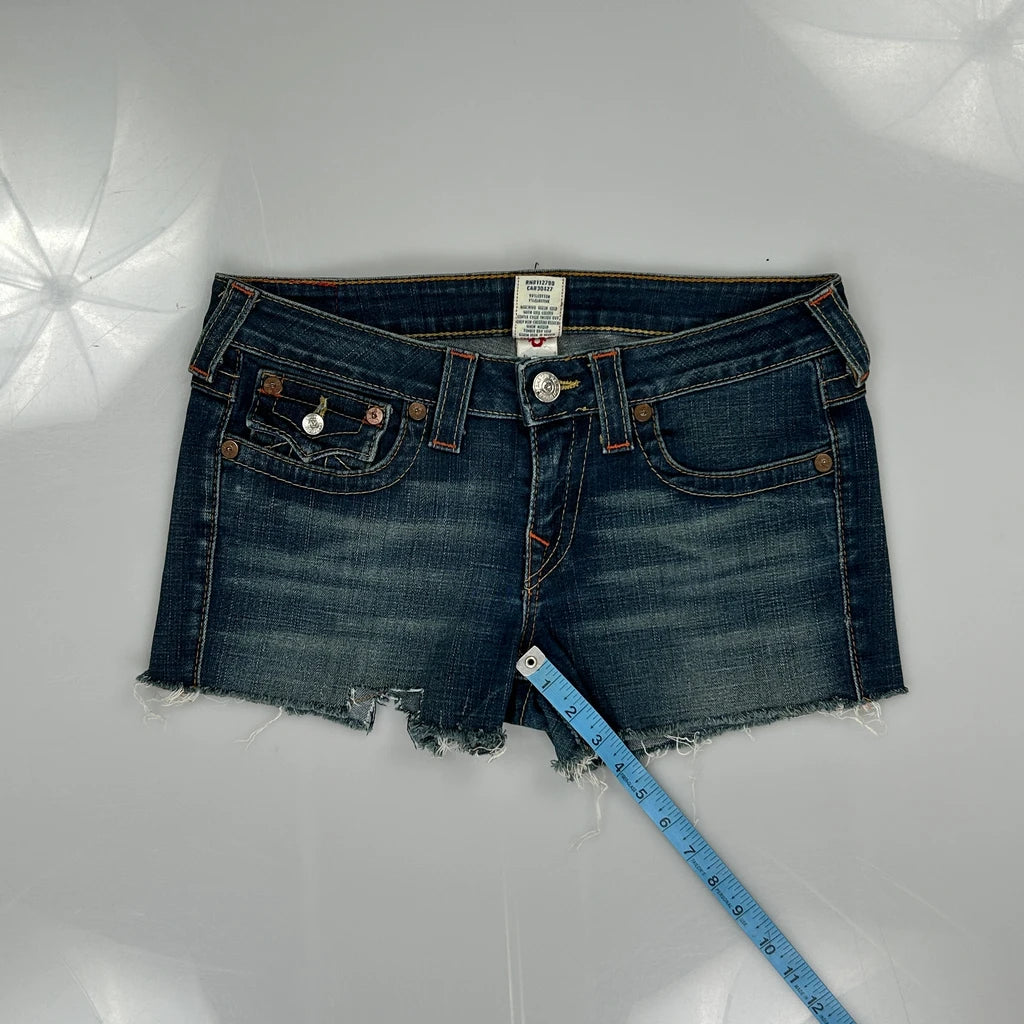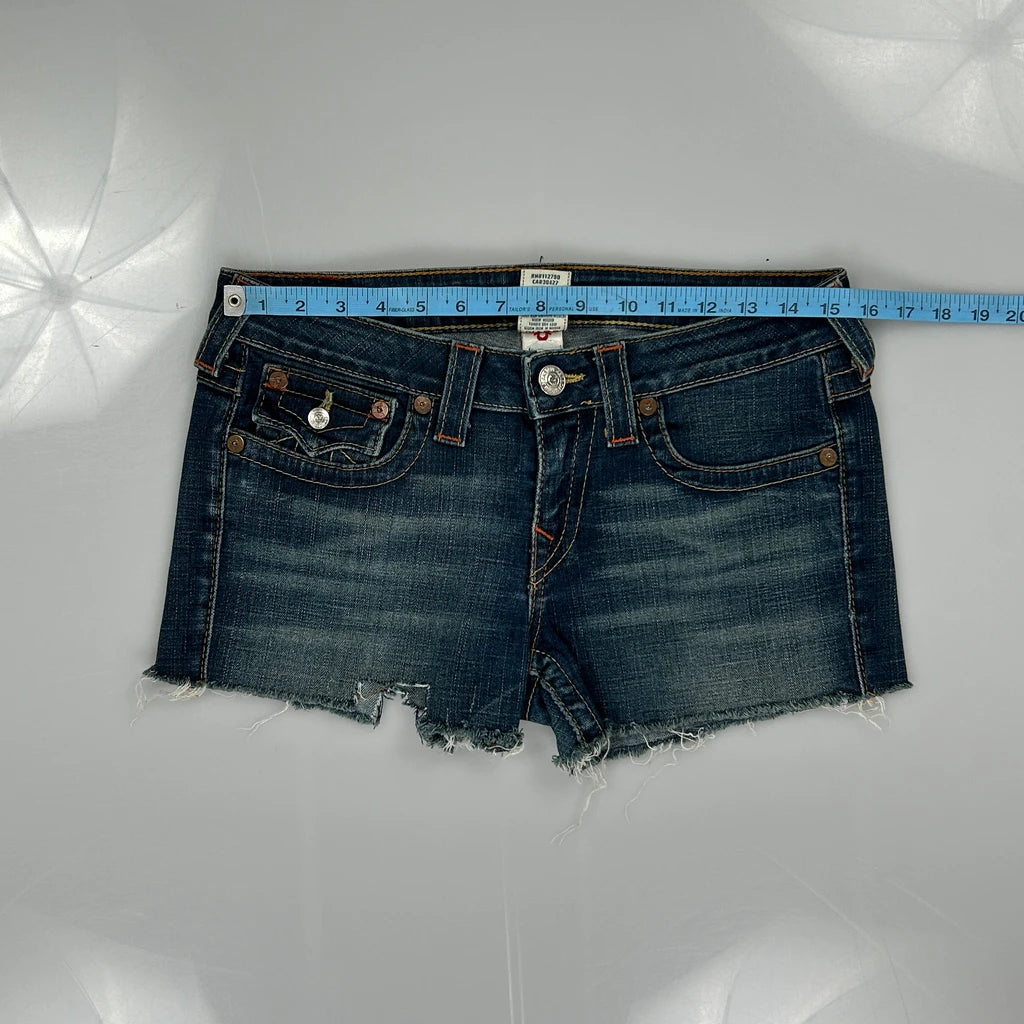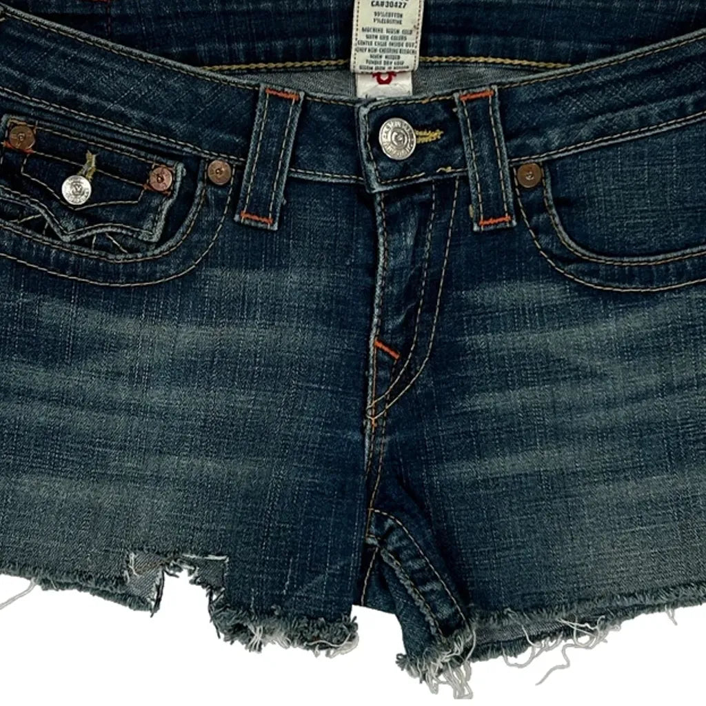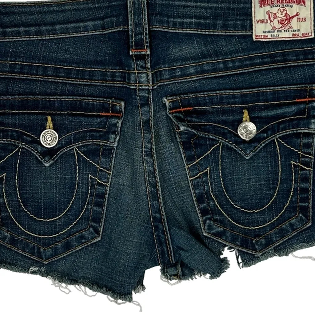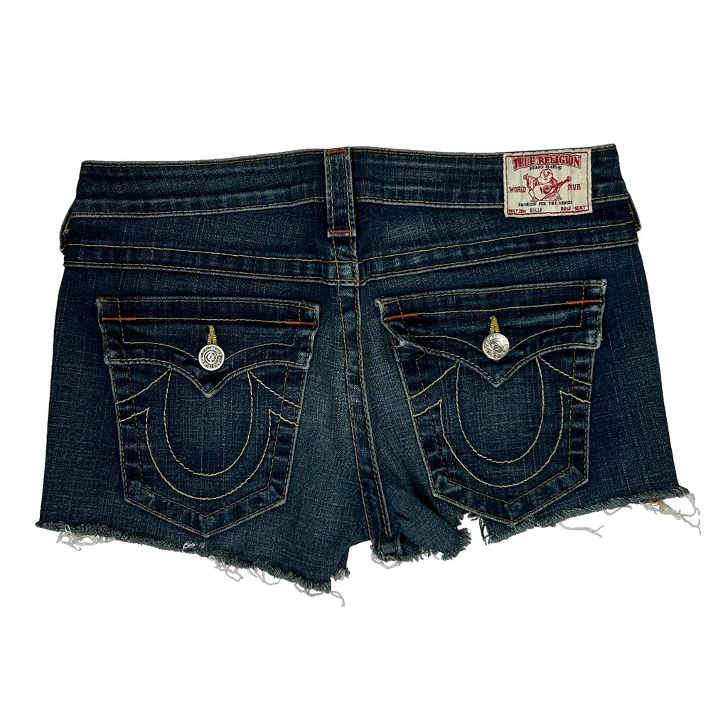 True Religion Denim Shorts - 31W UK 10 Dark Wash Denim