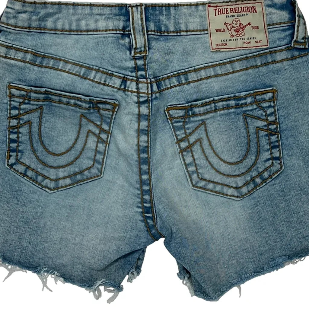 True Religion Denim Shorts - 28W UK 8 Light Wash Denim