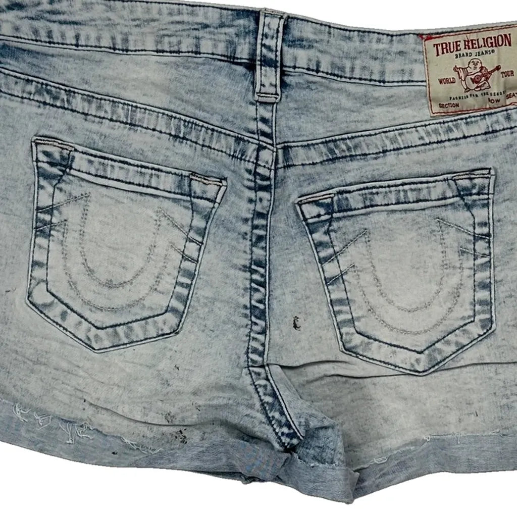 True Religion Mini Denim Shorts - 29W UK 10 Light Wash Denim