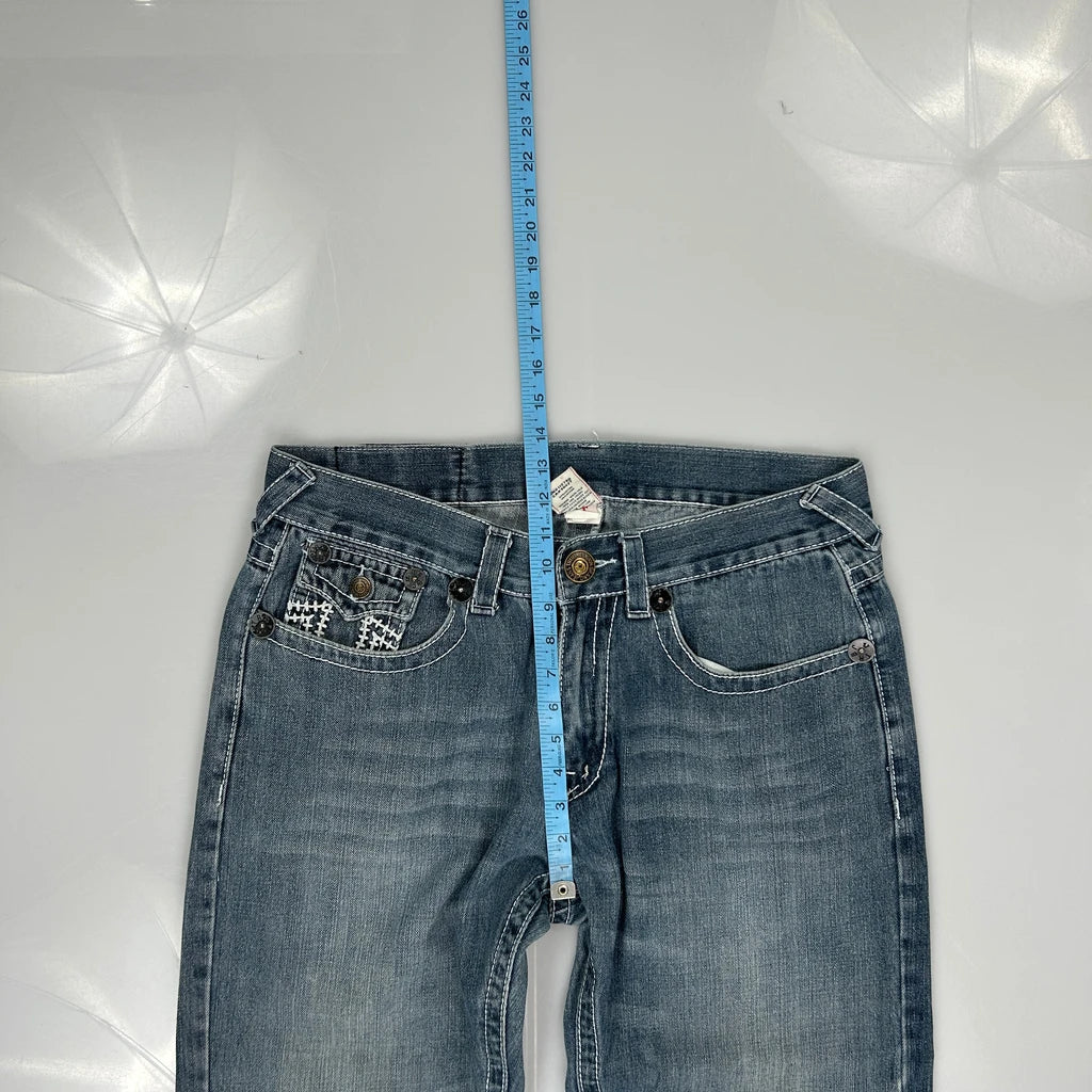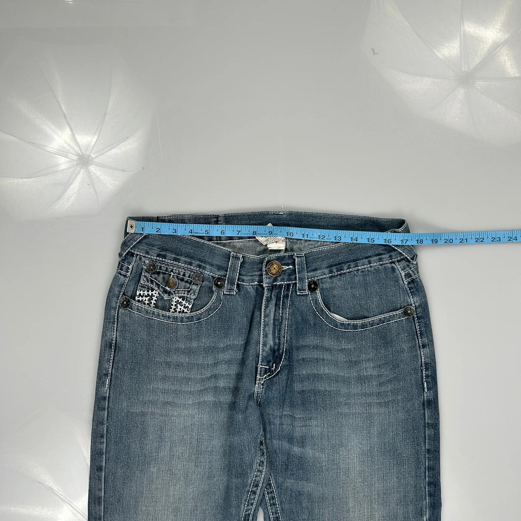 Made In Usa, Classic True Religion Jeans With Contrast Stitching.